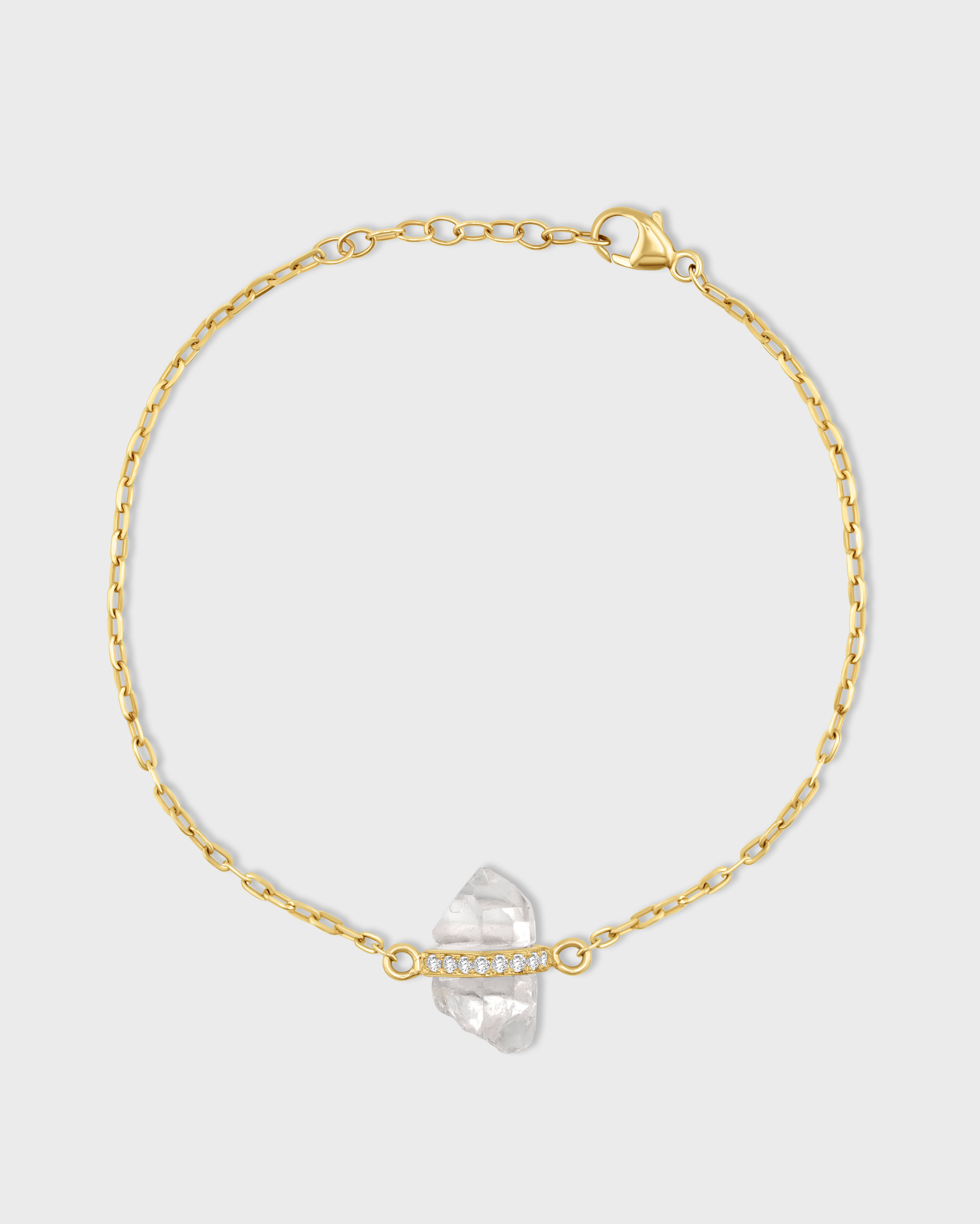 Crystalline Crystal Quartz Gold Bar Bracelet