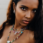 Each beaded jewelry piece is hand strung from the highest quality materials that are cut from natural mineral sources. They are sensitive to prolonged exposure to hairsprays and scents. To ensure longevity please be gentle and avoid tugging and pulling of these pieces.