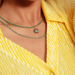 Our birthstone necklace series took our designer Jia-Jia a full year to develop. Each crystal that goes into each piece is hand selected and custom hand set in gold by our master jewelers in NYC.