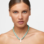 Crystal Quartz a stone considered to be an anchor for mental clarity – that centers this 14 Karat gold necklace is emblematic of JIA JIA's focus on the beauty of the natural world. It's hand-strung in the label's New York workshop with beaded discs of blue jasper, then fitted with an adjustable lobster clasp.