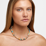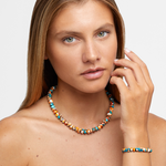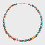 Beautiful turquoise, orange, and bronze colors combined to create a unique combination of colors - hand strung in New York City.