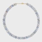 Soft blue lace agate crystal hand strung in New York City and finished with 14 karat yellow gold.