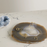 A beautiful agate display piece or can be used as a coaster. This slice is made from natural agate which is believed to bring about calm and enhance mental function. Keep it on your desk for when you need to focus.