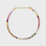 Light rainbow sapphire bracelet with mini gold beads for all year round. Perfect to wear on its own or multiples for a statement.