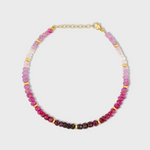 Ruby ombre bracelet with mini gold beads for all year round. Perfect to wear on its own or multiples for a statement.