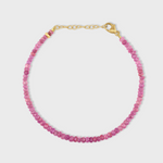 Pretty pink sapphire bracelet bringing love, strength, and cheer to any day. Hand strung in New York City and finished with 14 karat gold.