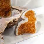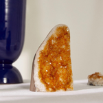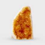 Brilliant and golden large druzy point citrine geodes with a flat surface so it can stand upright in any surface. It brings a sense of abundance and warmth, making it perfect for creating an inviting atmosphere. Display it as a statement piece in your home or office.