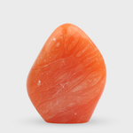 The Orange Calcite Dome radiates vibrant energy with its warm, sun-kissed hues. Known for promoting joy and creativity, this piece adds a lively touch to your home or workspace. Its smooth, polished surface captures light beautifully, making it a striking accent piece.