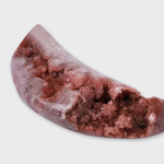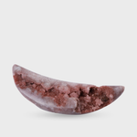 Shaped like a crescent moon, this Pink Amethyst piece embodies gentle, feminine energy and emotional healing. Its soft pink hues and crystalline structure make it a unique decorative piece or a tool for meditation. A perfect addition to any space seeking peace and harmony.