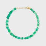 Vibrant green opal bracelet hand strung in New York City and finished with 14 karat yellow gold.