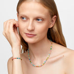 Bright rainbow opals hand strung in the heart of New York City and finished with 14 karat yellow gold.