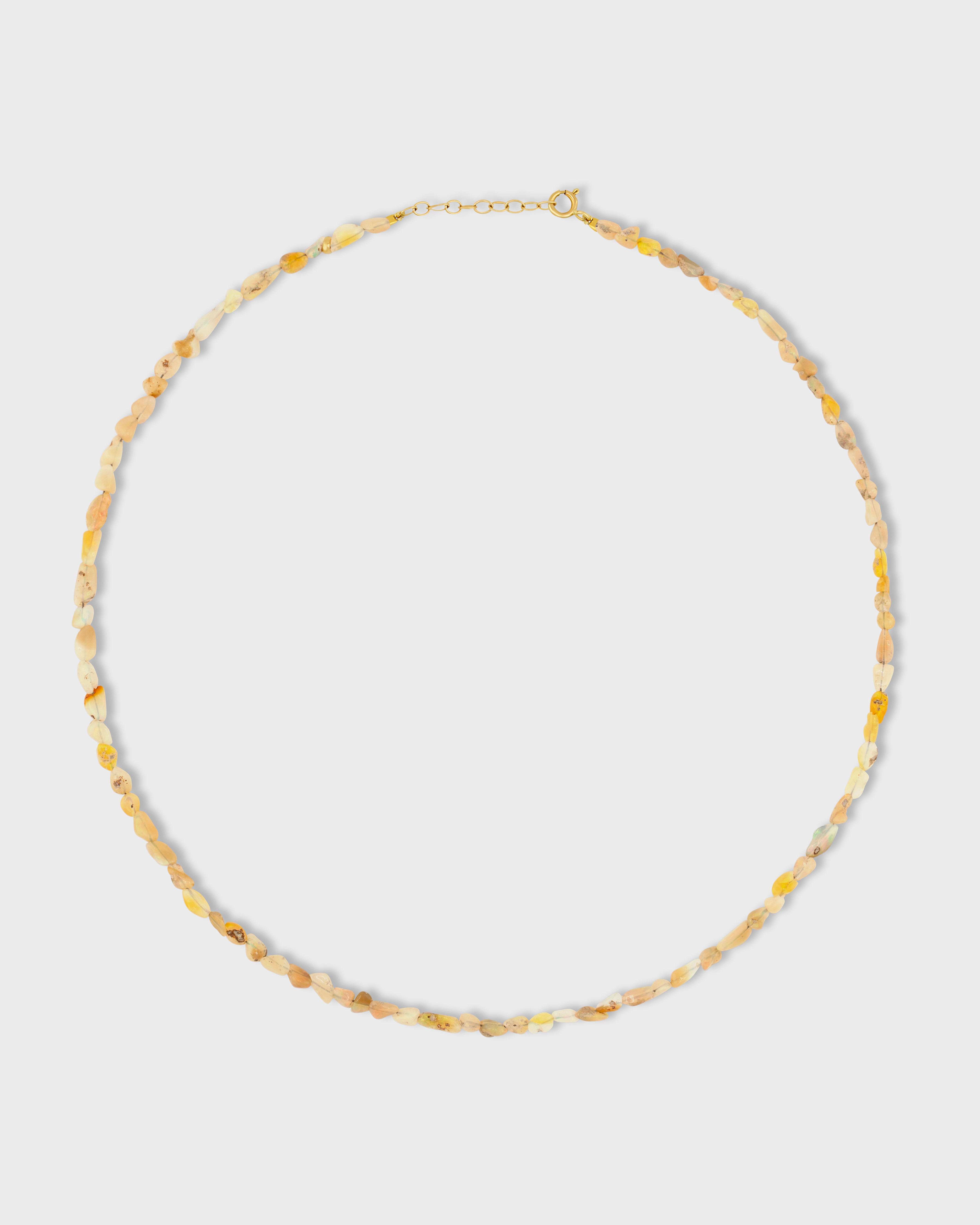 Vibrant mini rainbow opal pebbles hand strung in the heart of New York City and finished with 14 karat yellow gold.