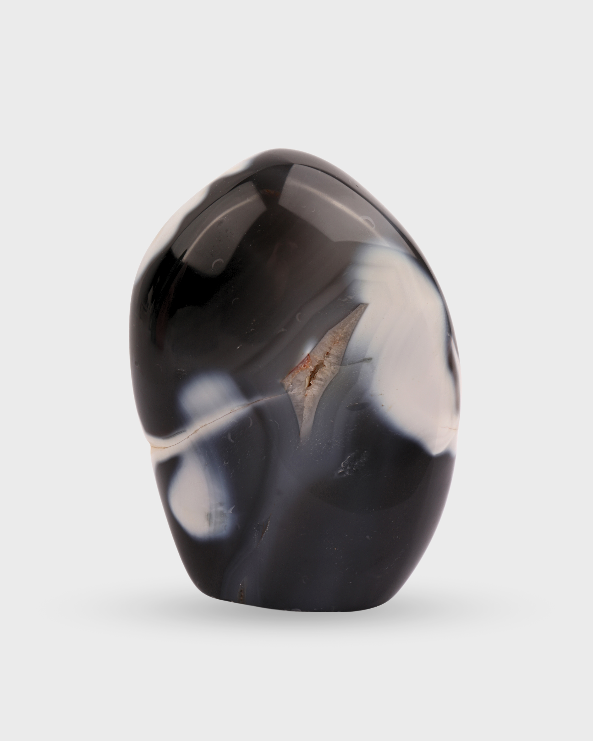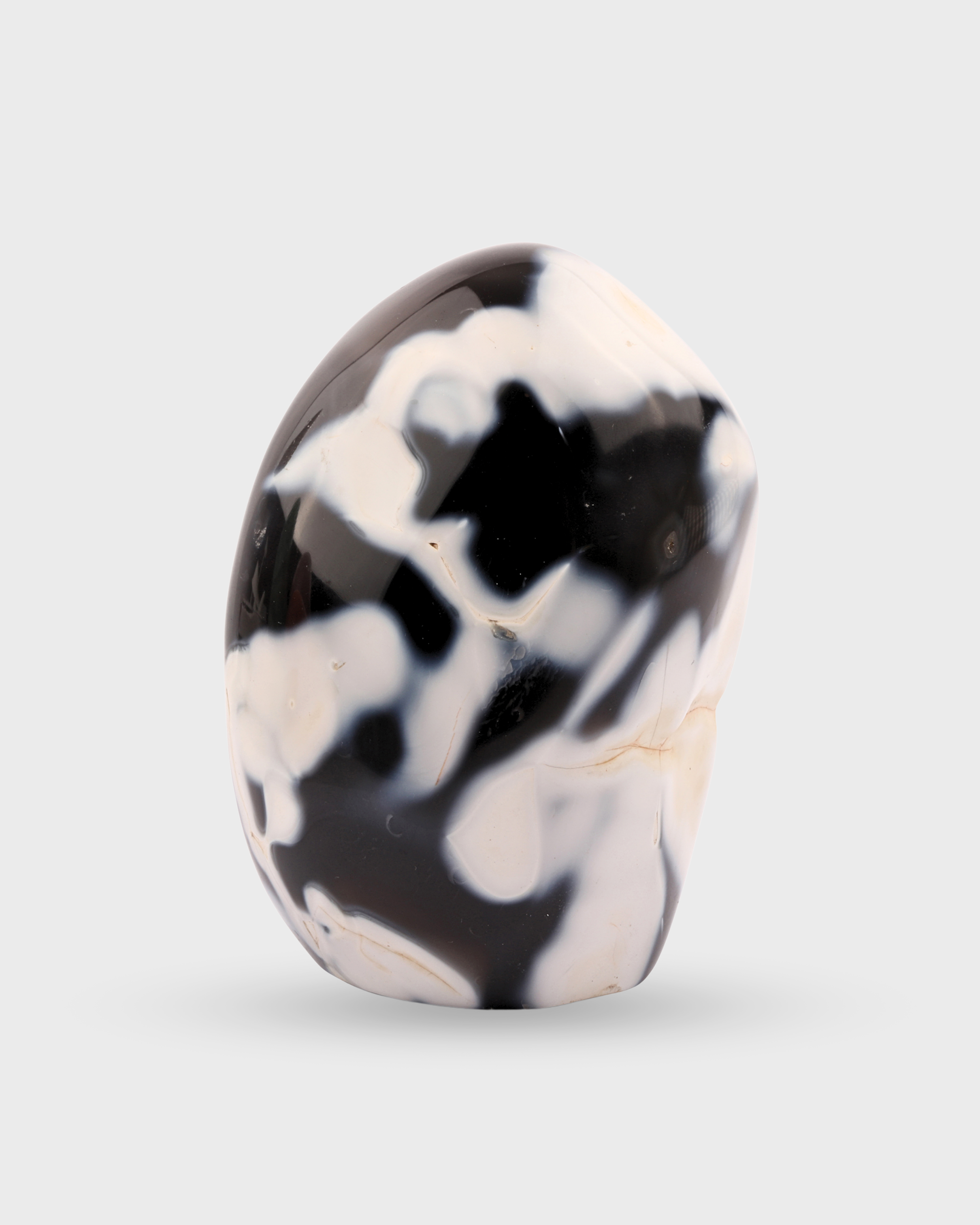 The Orca Jasper Dome features bold black and white patterns reminiscent of orca whales, adding a striking visual contrast to any space. Known for grounding and nurturing energy, this piece is perfect for promoting emotional balance. Its polished dome shape makes it an eye-catching addition to your décor.