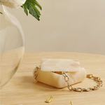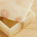 Crafted from luxurious white onyx, this jewelry box showcases natural creamy hues with delicate blush accents, adding a refined elegance to any decor. Its smooth, polished lid and softly rounded edges create an inviting space for safeguarding your cherished pieces. A timeless addition to your collection, this onyx box combines beauty and practicality, embodying serene sophistication.
