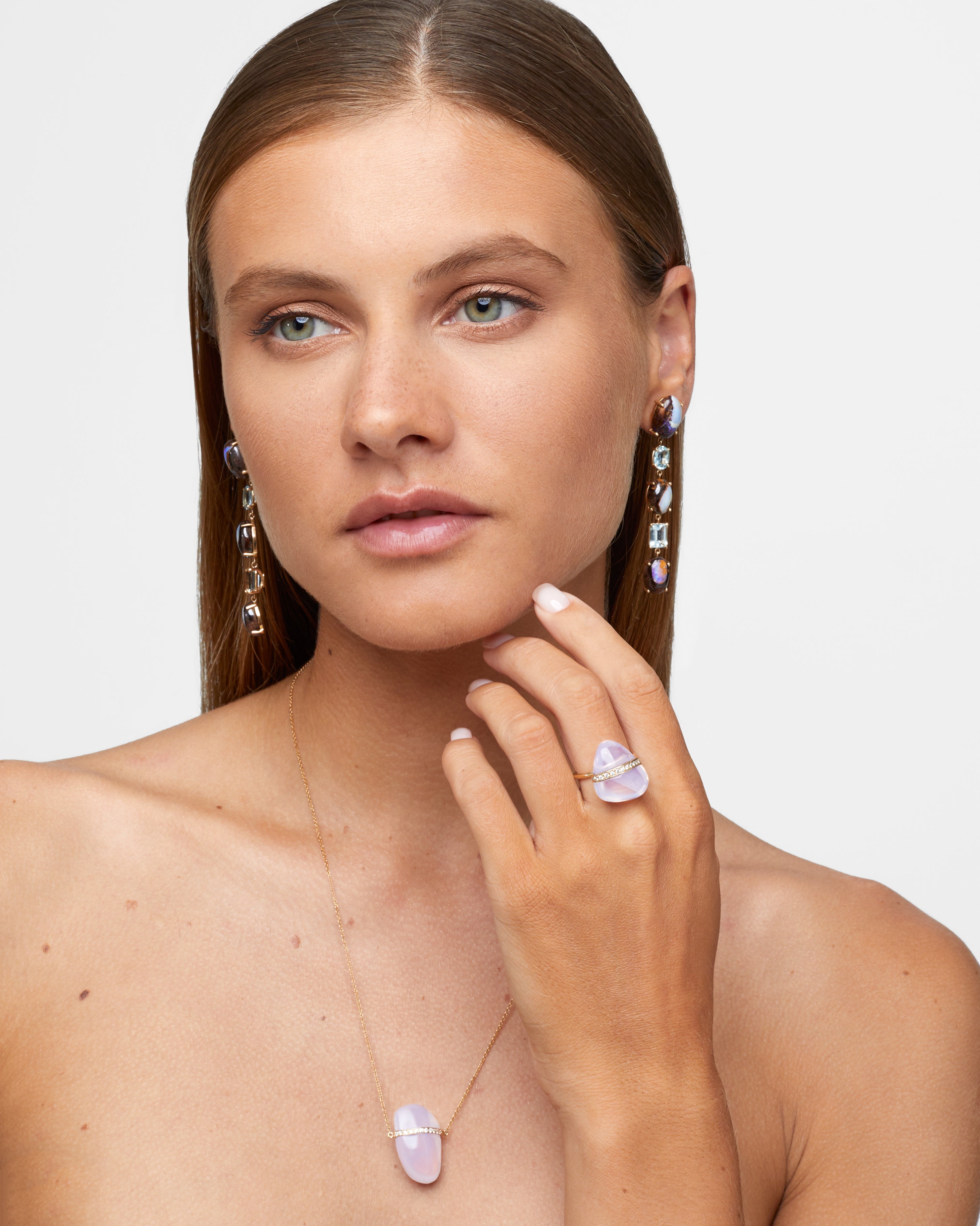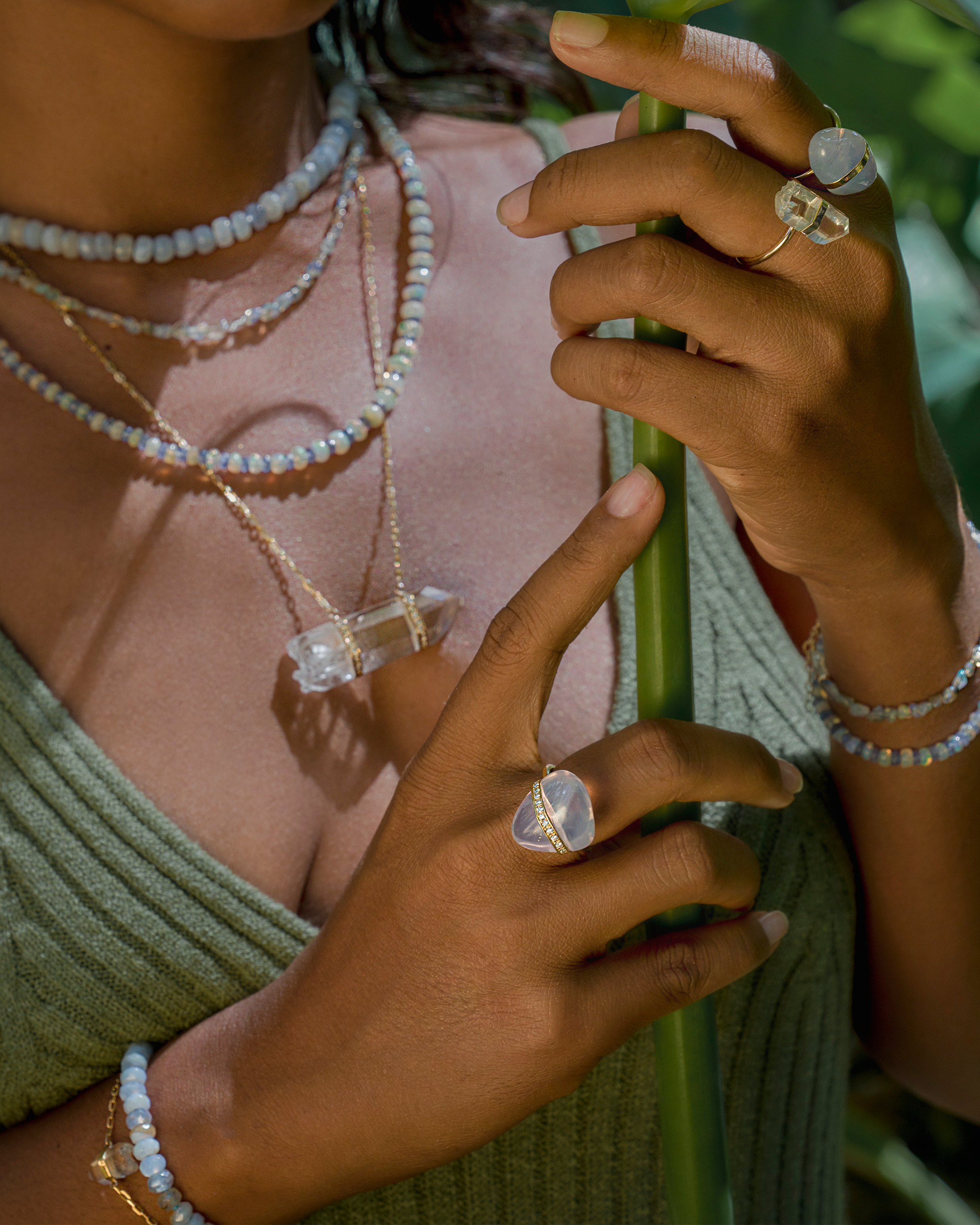 Each beaded jewelry piece is hand strung from the highest quality materials that are cut from natural mineral sources. They are sensitive to prolonged exposure to hairsprays and scents. To ensure longevity please be gentle and avoid tugging and pulling of these pieces.