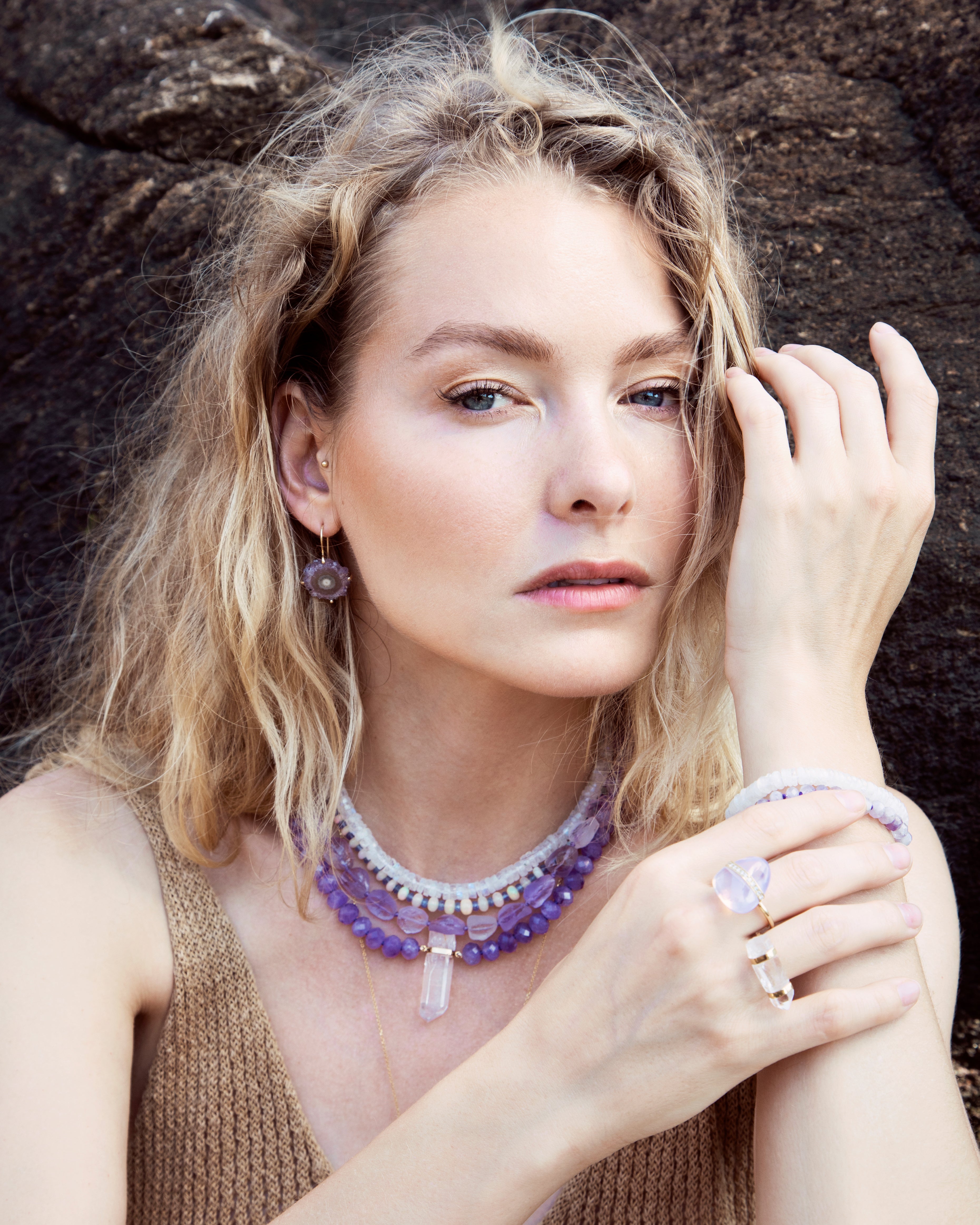Our lavender quartz is rare and special. There is only one mine that has been found to have this beautiful rare mineral. When these minerals were first found it was covered in dark brown dirt mineral after being left in the sun for a few months the external mineral shed and revealed a milky translucent lavender purple. There is a unique energy that drew me to this stone and I feel incredibly honored to be working with it.