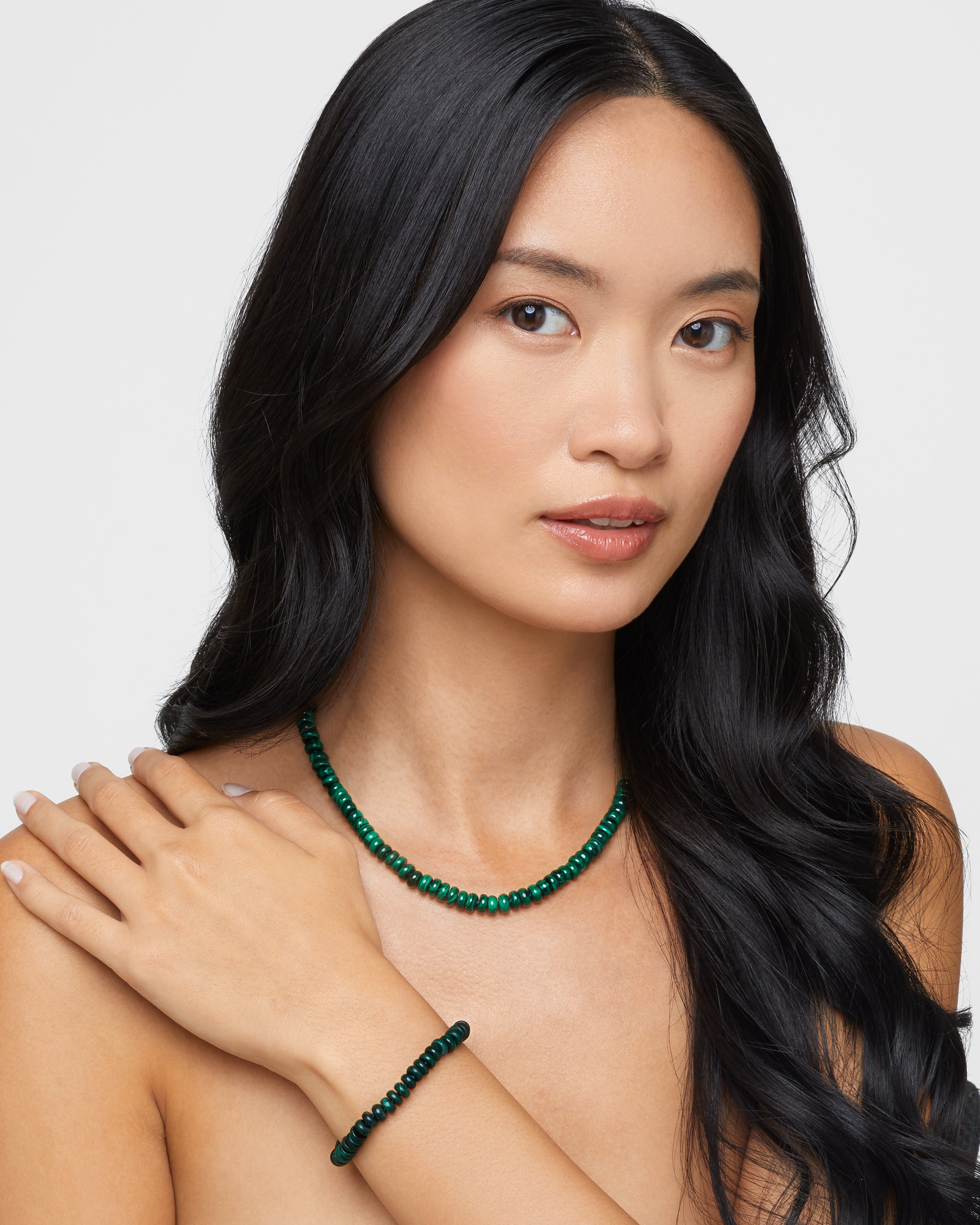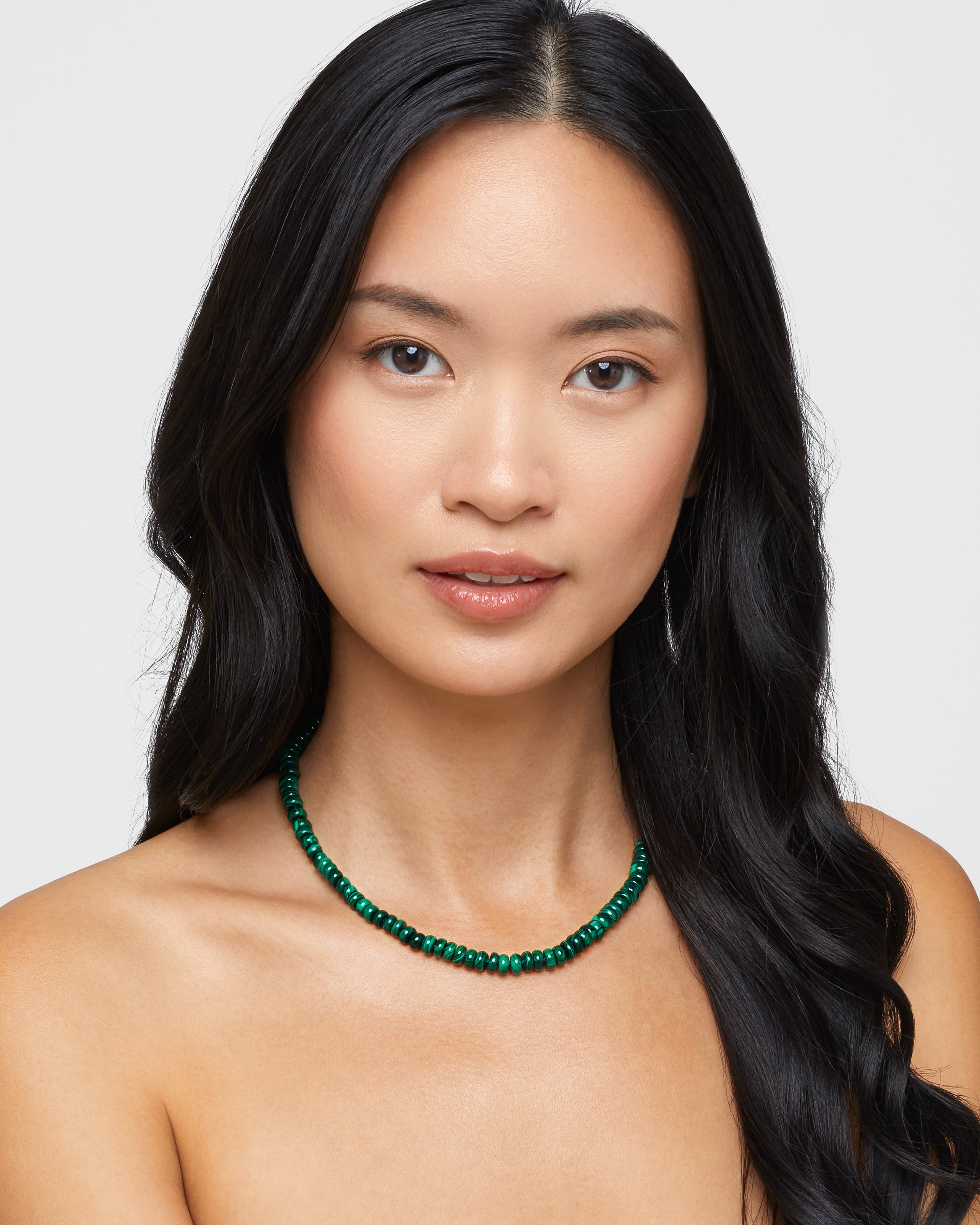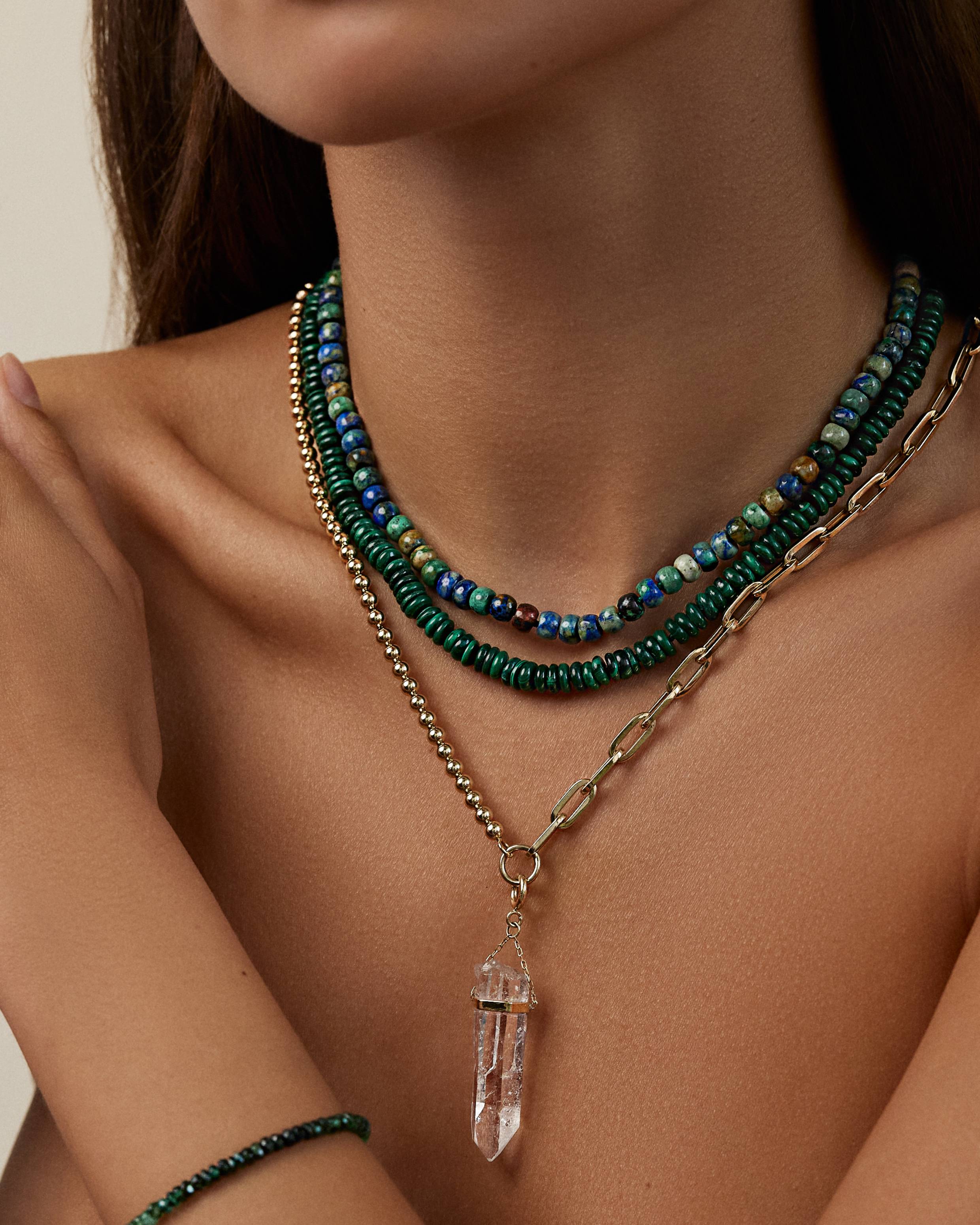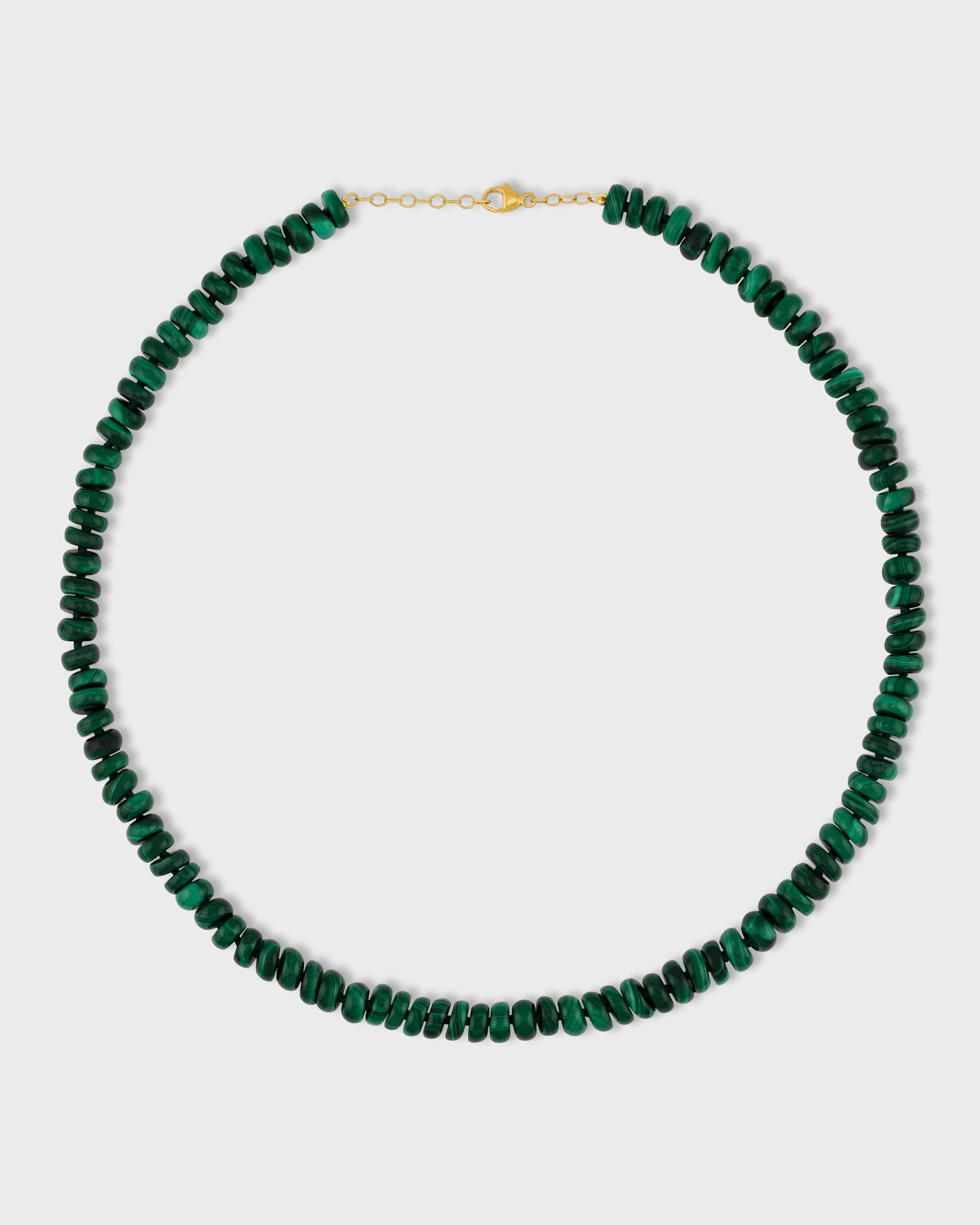 Crafted from malachite's striking green bands, this necklace exudes natural elegance and grounding energy. Its unique, swirling patterns are designed to captivate with every turn, symbolizing transformation and growth.