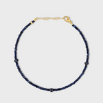 This exquisite piece showcases a delicate strand of deep blue sapphire beads, carefully selected for their rich color and quality. Interspersed along the bracelet are subtle diamond accents, adding a touch of sparkle and luxury.