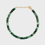 Beautiful faceted cut emerald gemstone bracelet that is hand knotted and finished in 14 karat gold.