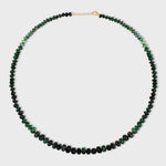 The Emerald Faceted Necklace features a stunning arrangement of deep green emeralds, skillfully faceted to highlight their natural brilliance. The smooth transition in color from dark to light green creates an elegant ombre effect, making this necklace a beautiful and sophisticated piece. It's perfect for adding a touch of luxury and timeless style to any outfit.
