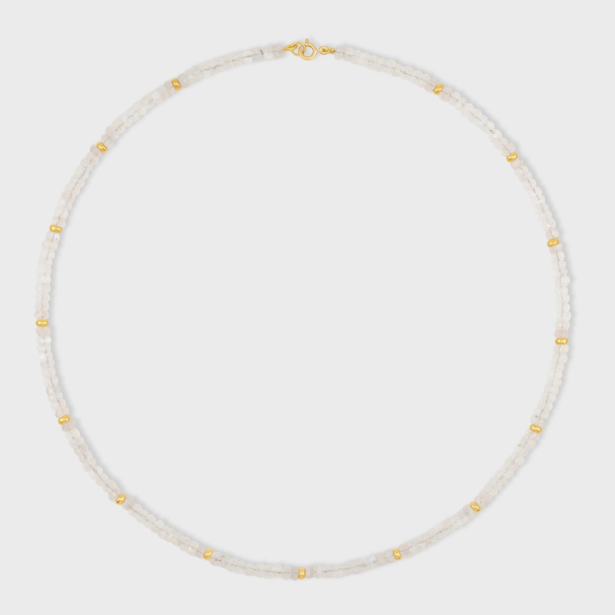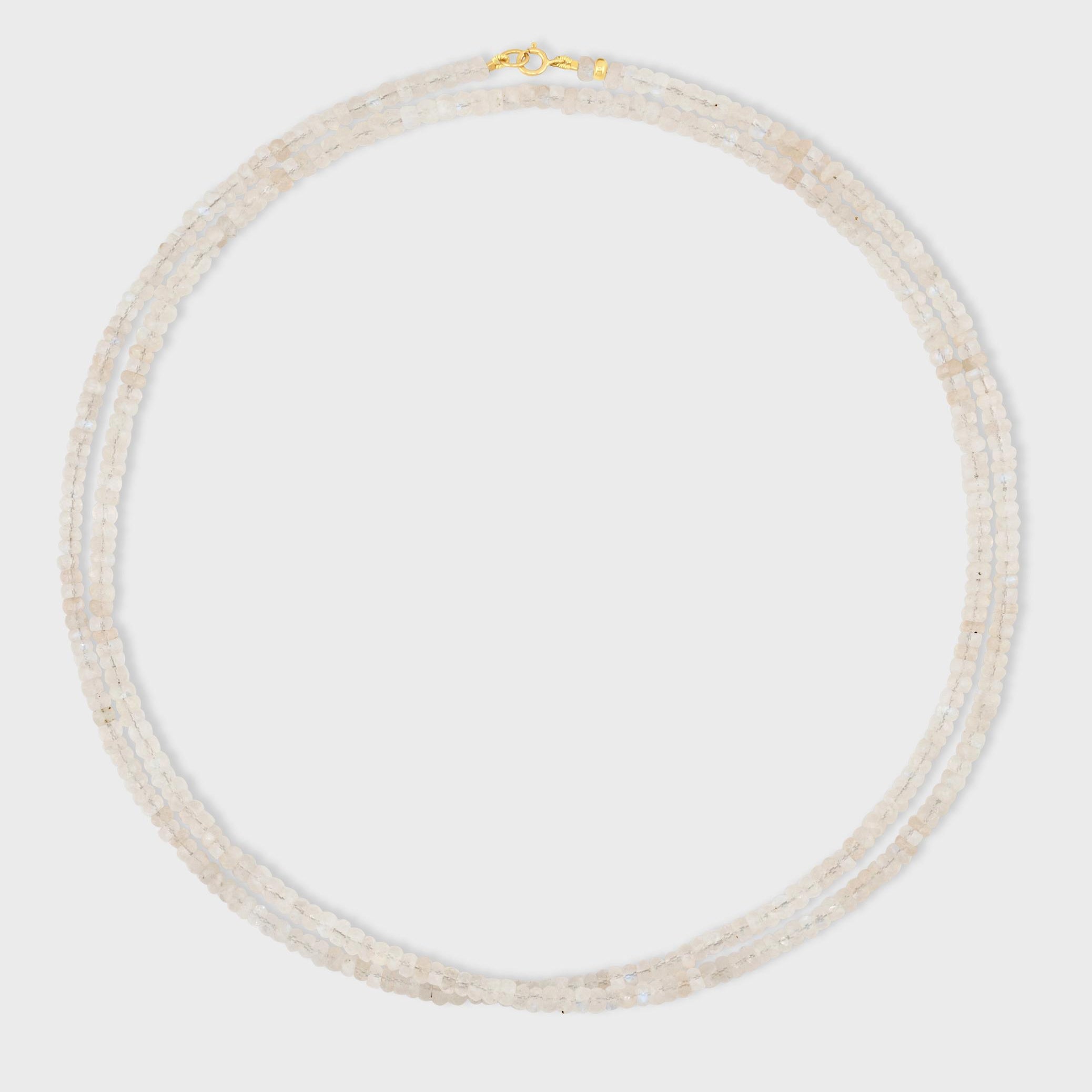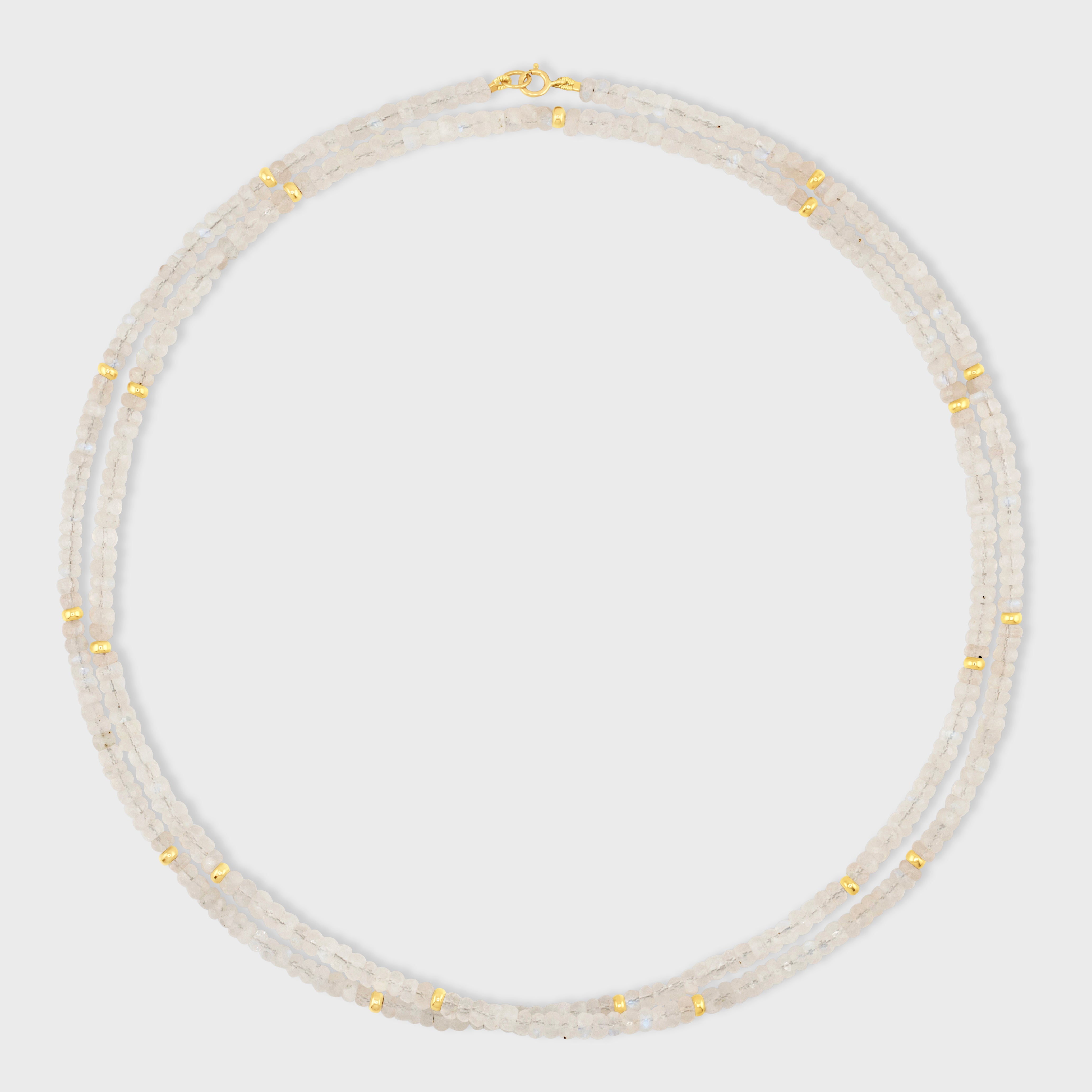 Birthstone June Moonstone Gold Bead Double Long Necklace