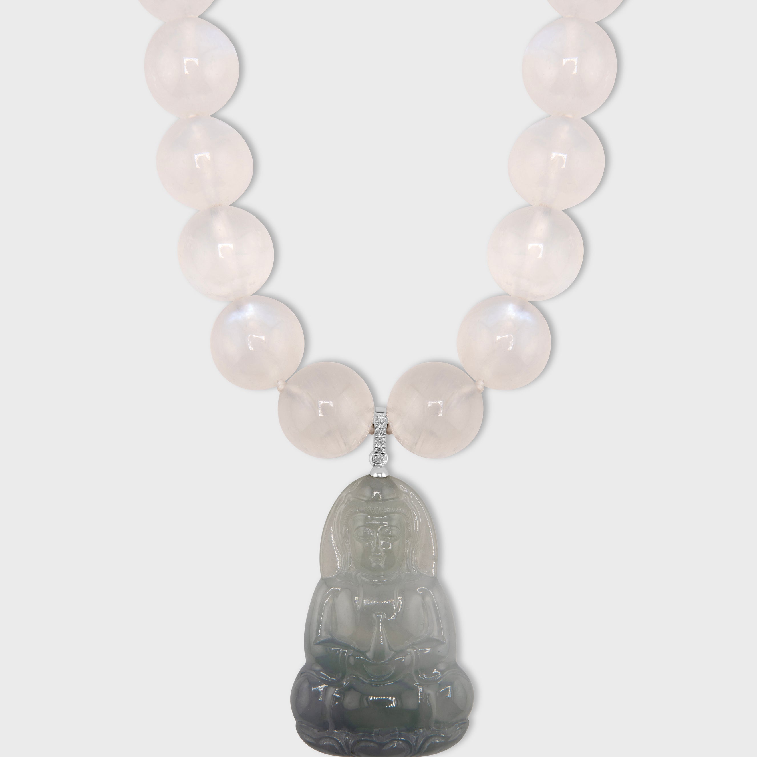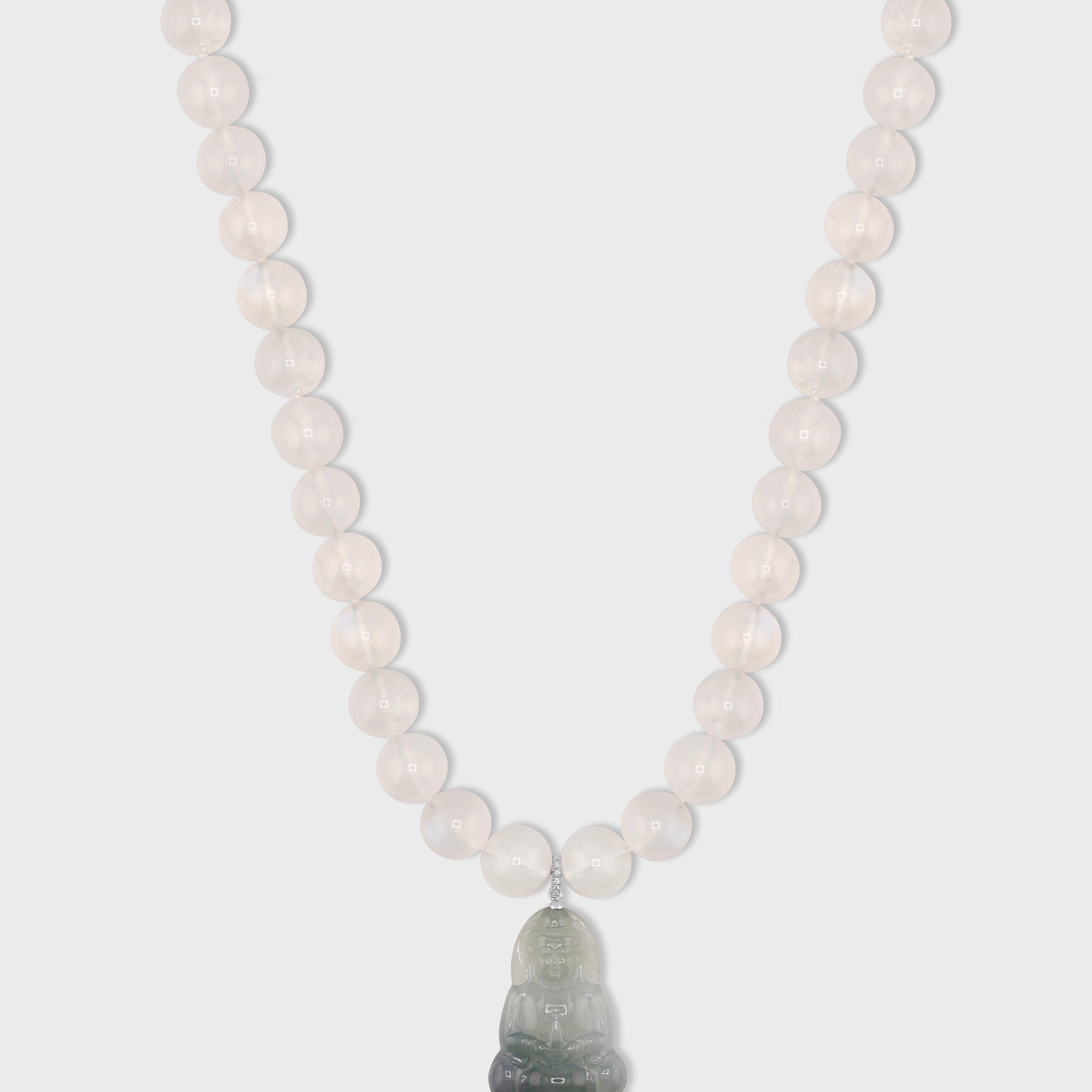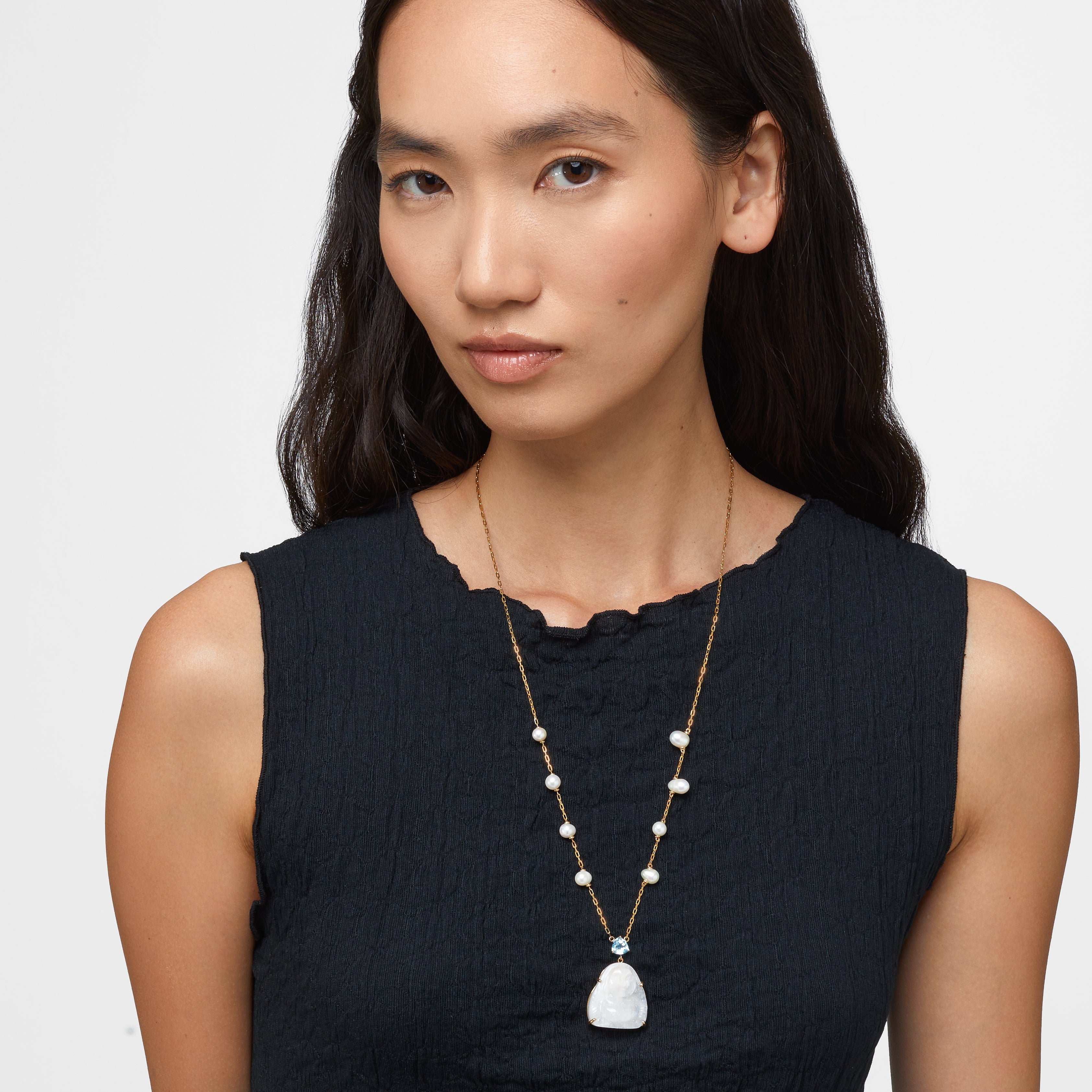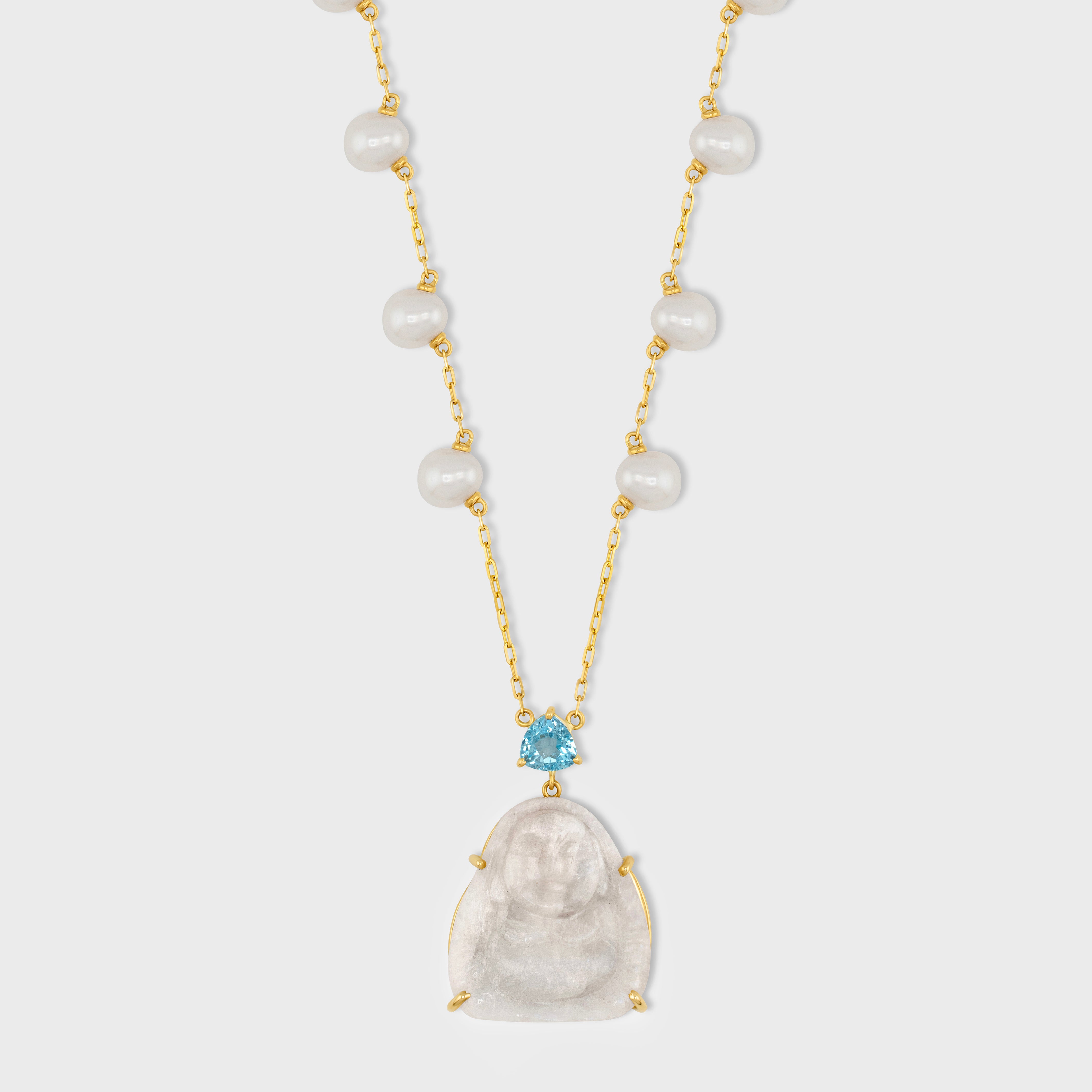 Happy Buddha Rainbow Moonstone Topaz Crown Pearl Necklace