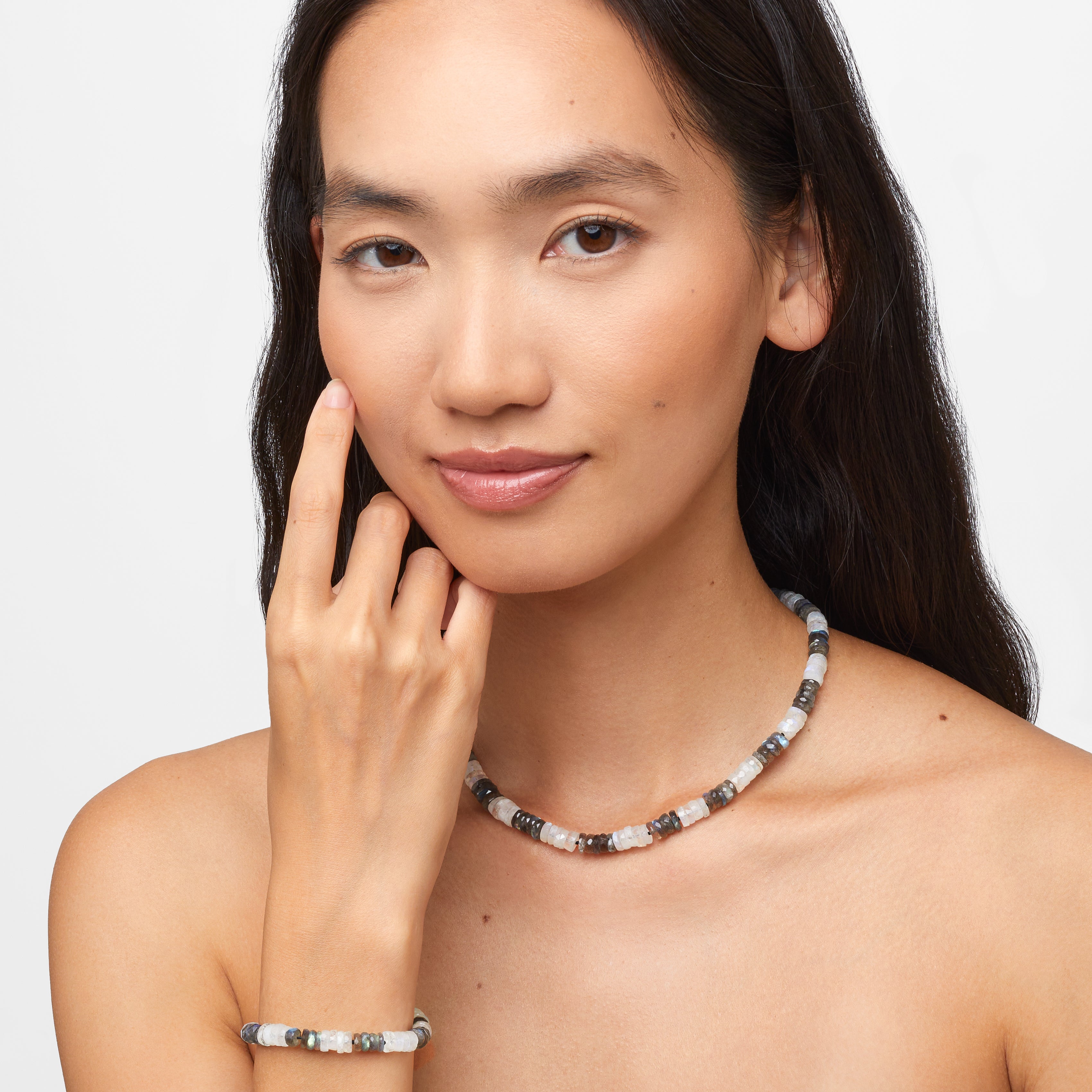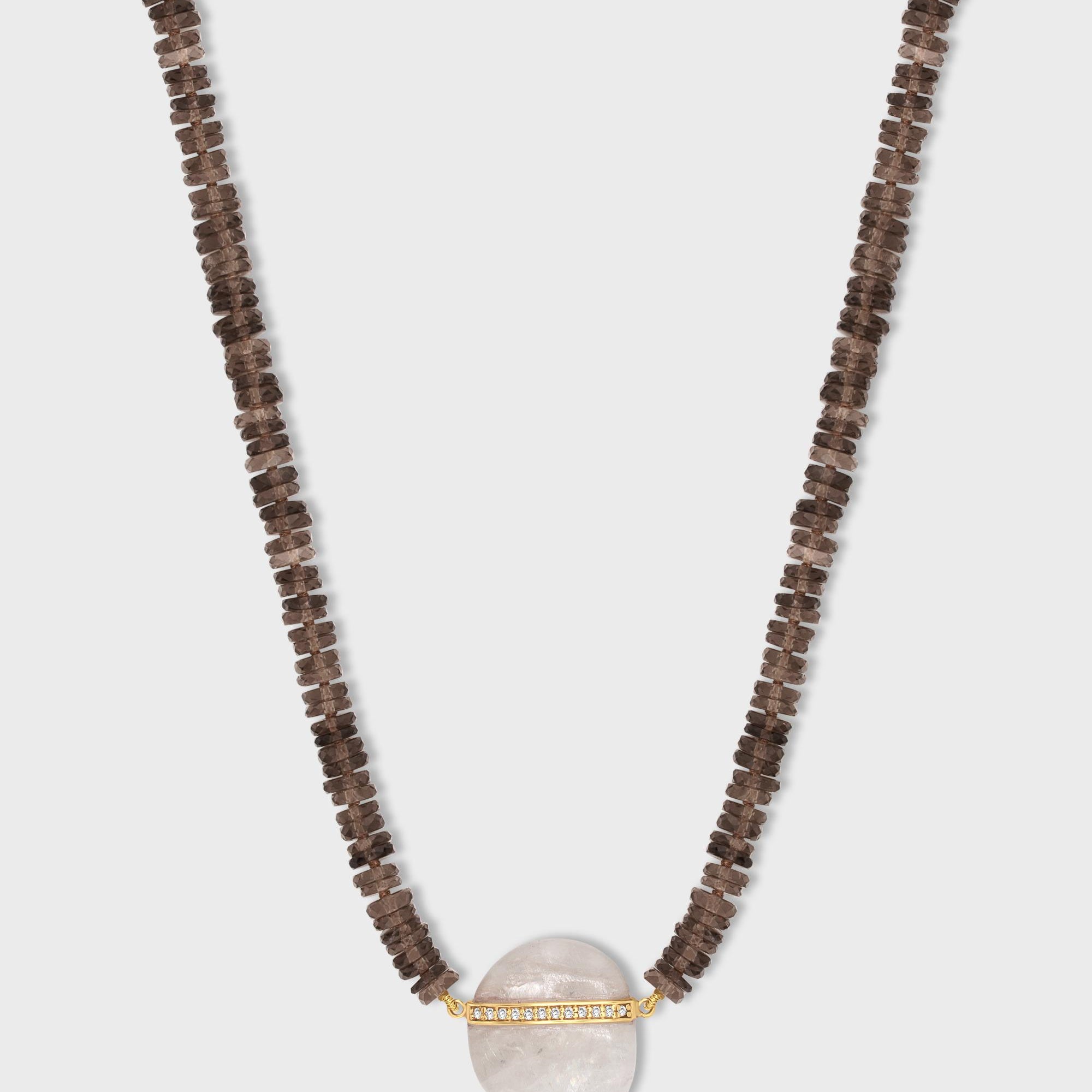 Aurora Smoky Quartz Moonstone Diamond Bar Necklace