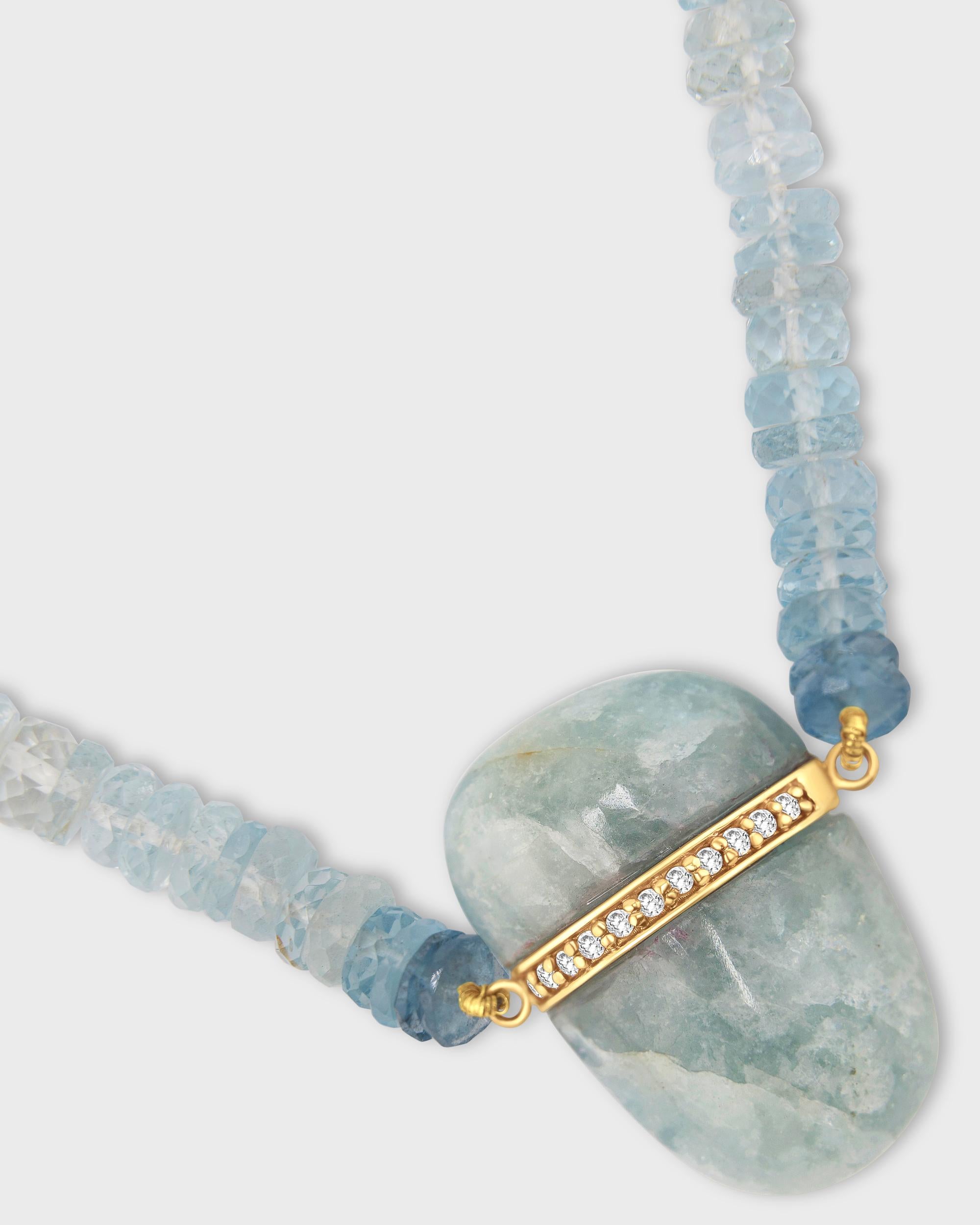 Aurora Morganite Aquamarine Diamond Bar Necklace