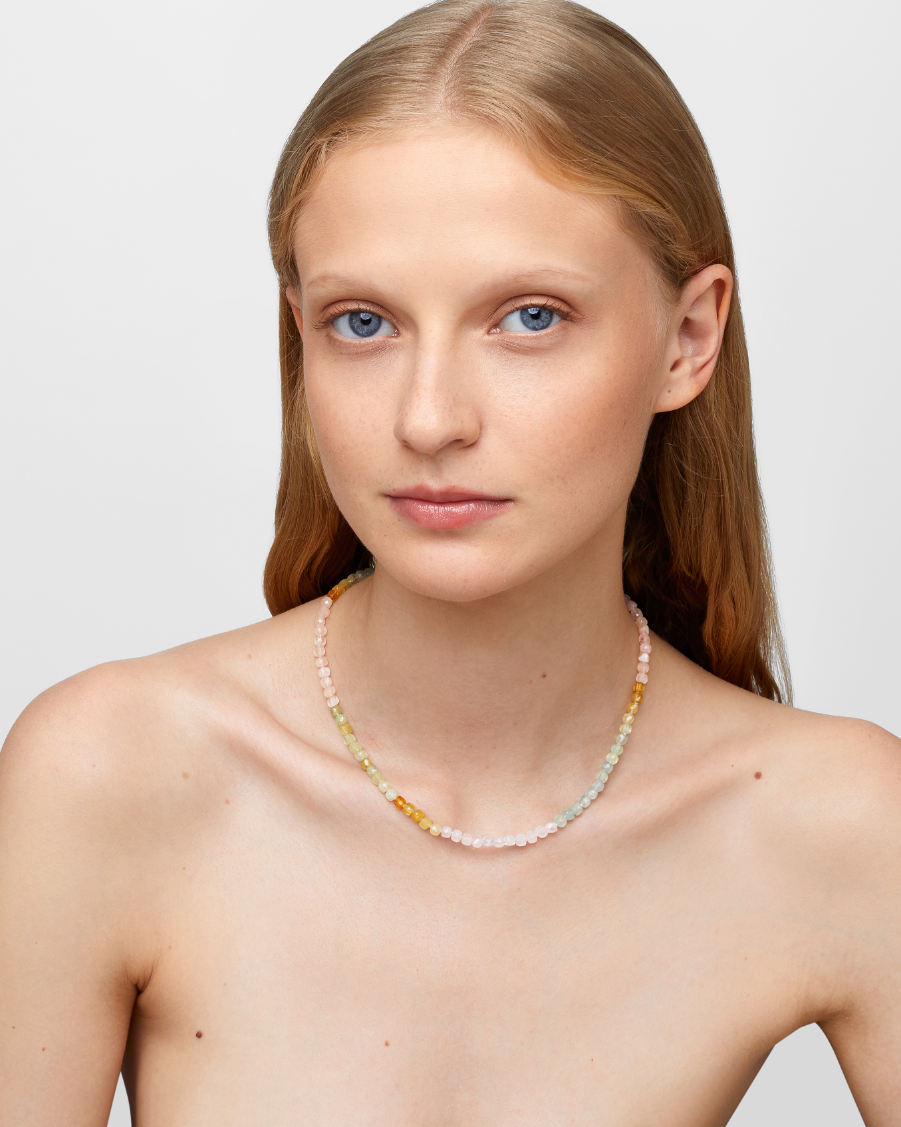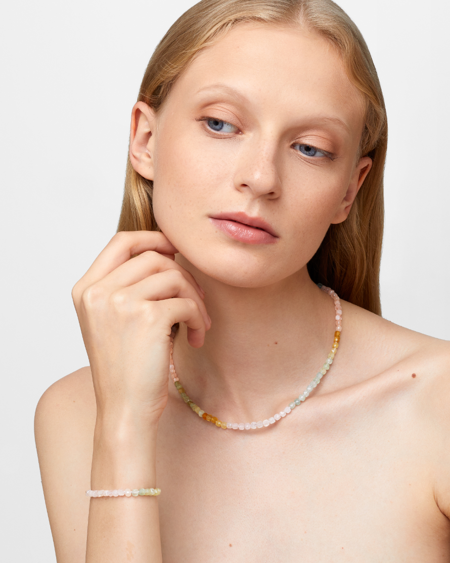 Each beaded jewelry piece is hand strung from the highest quality materials that are cut from natural mineral sources. They are sensitive to prolonged exposure to hairsprays and scents. To ensure longevity please be gentle and avoid tugging and pulling of these pieces.