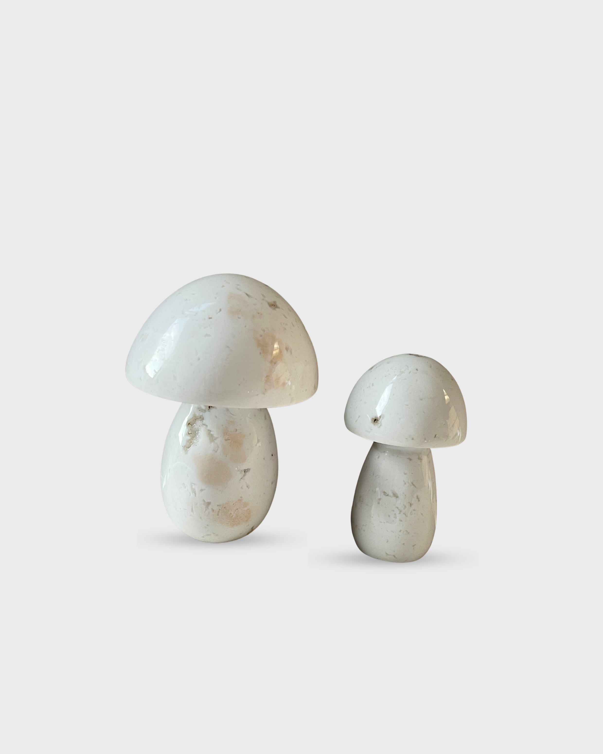 Hand-carved from natural White Agate, these crystal mushrooms symbolize growth and harmony while bringing calm, grounding energy into any space. Beautiful displayed together or styled with other JIA JIA pieces for a serene, intentional touch.