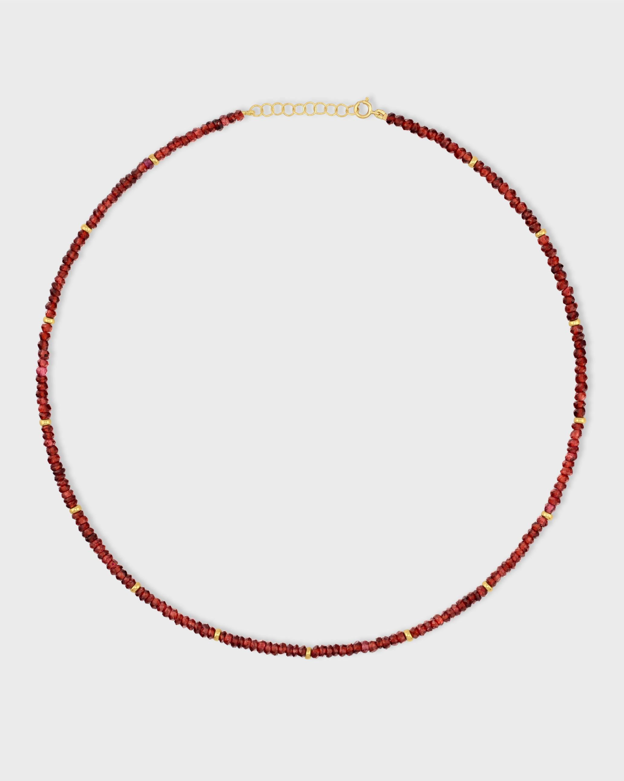Faceted Garnet beads are thoughtfully hand-strung with gold accents in this refined necklace, celebrating natural color and variation. A timeless everyday piece that layers beautifully or stands on its own.