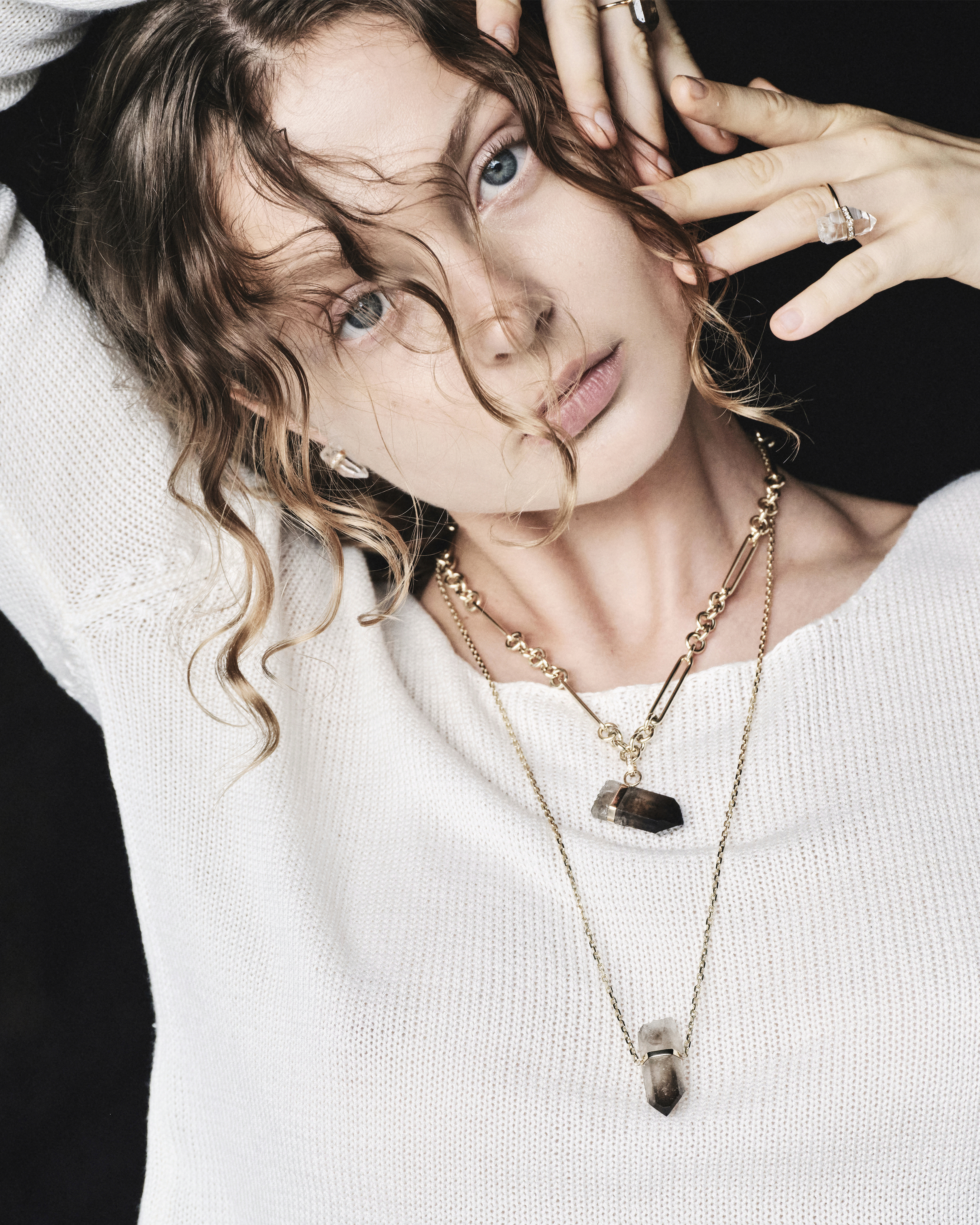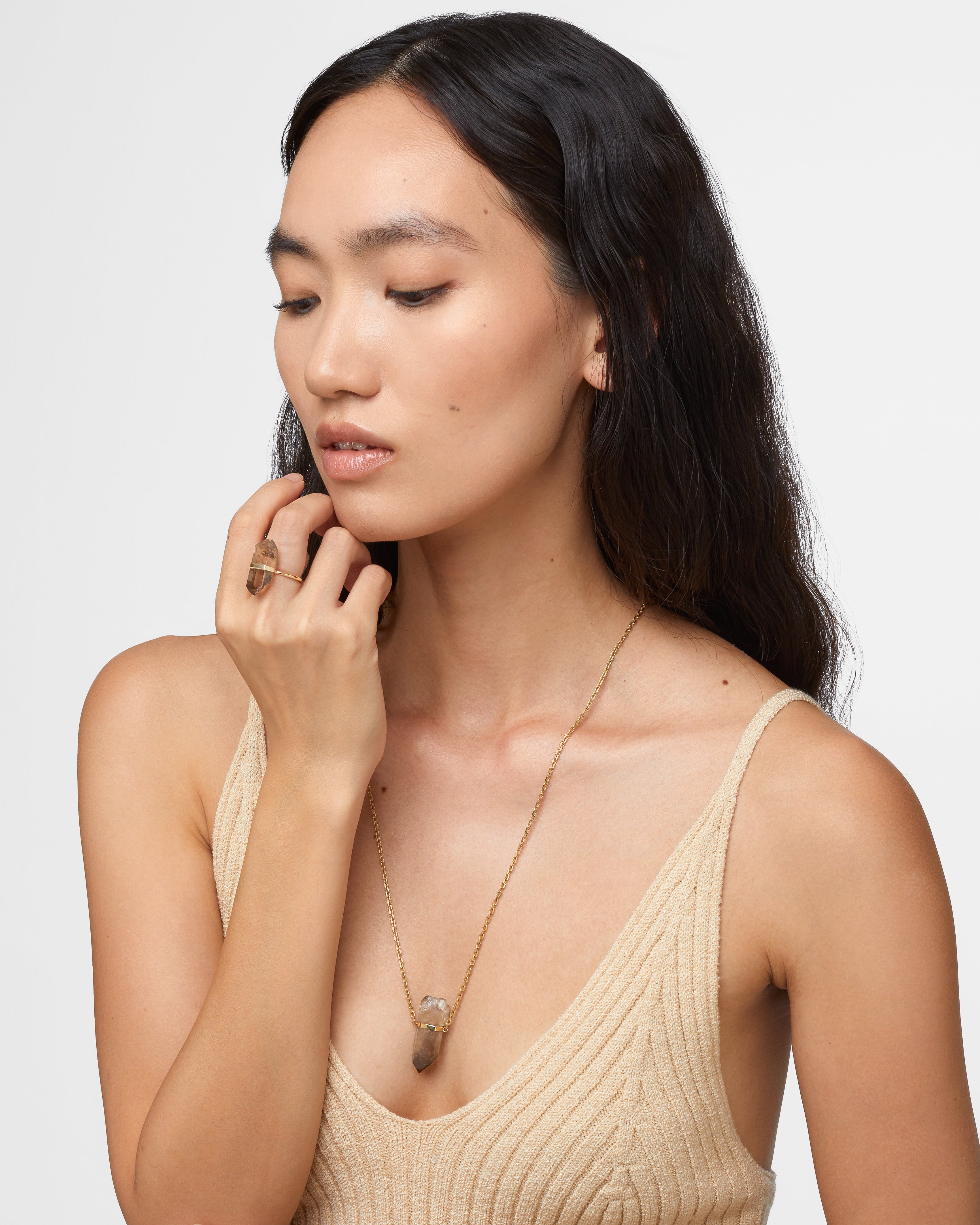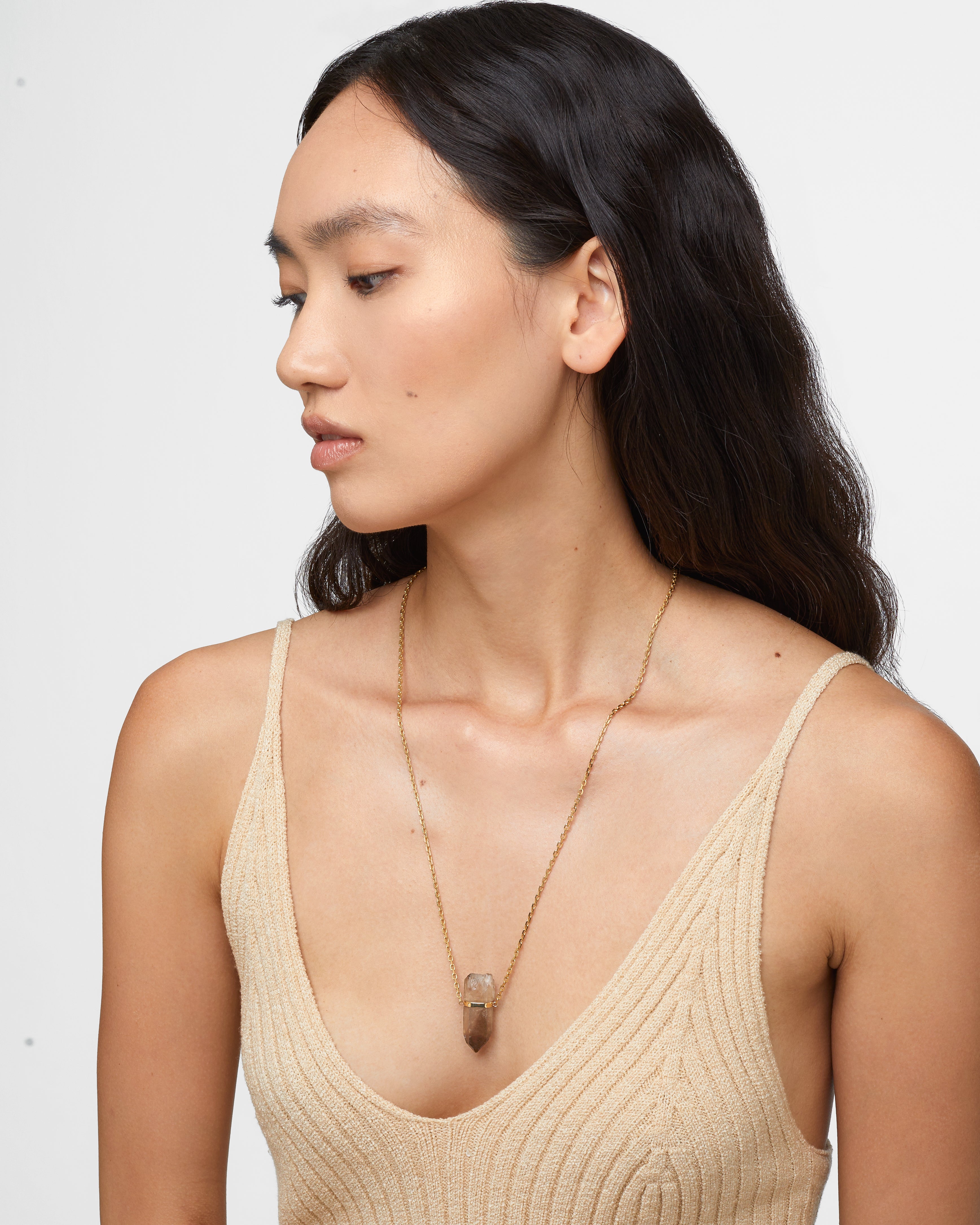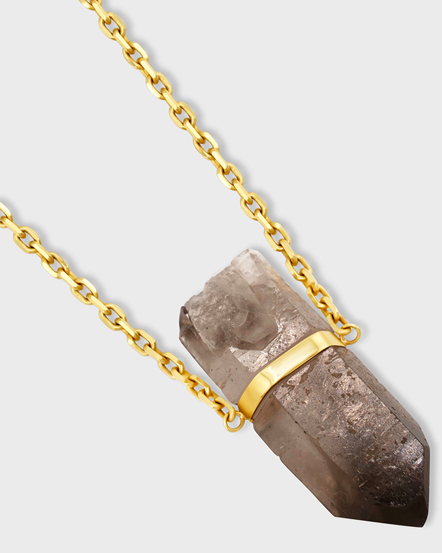 The Master of all grounding stones, the Smoky Quartz. Natural, uncut, untreated, unpolished one of a kind mineral custom hand set in yellow gold and Italian chain.