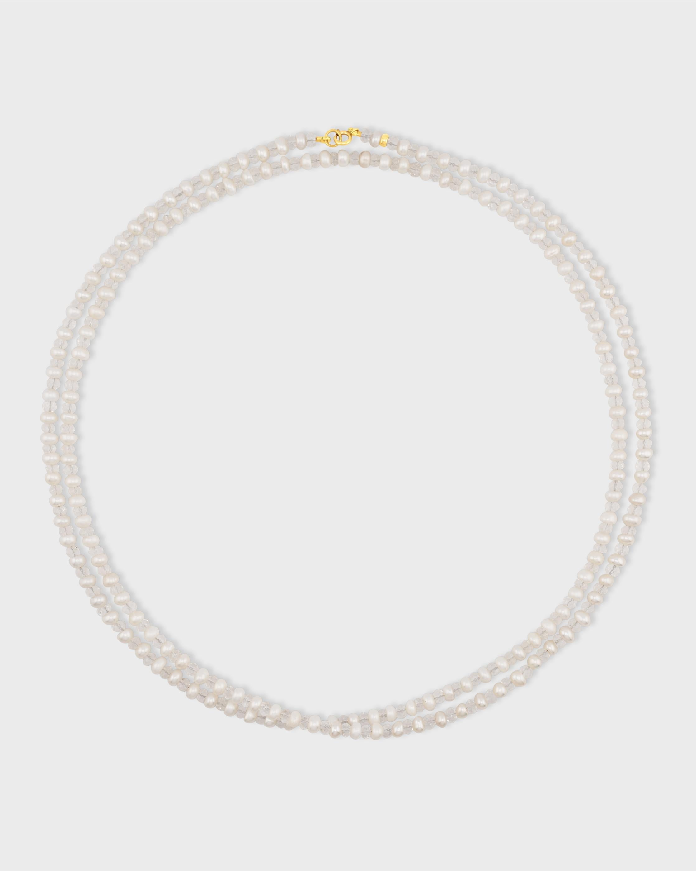Ocean Pearl Crystal Quartz Diamond Bar Necklace