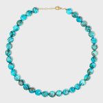 Beautiful jumbo turquoise spheres hand strung with silk in New York City, finished in 14 karat gold.