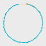 Beautiful spherical turquoise hand strung with silk in New York City, finished with 14 karat gold.