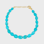 Beautiful turquoise nuggets hand strung with silk in New York City, finished with 14 karat gold hardware.