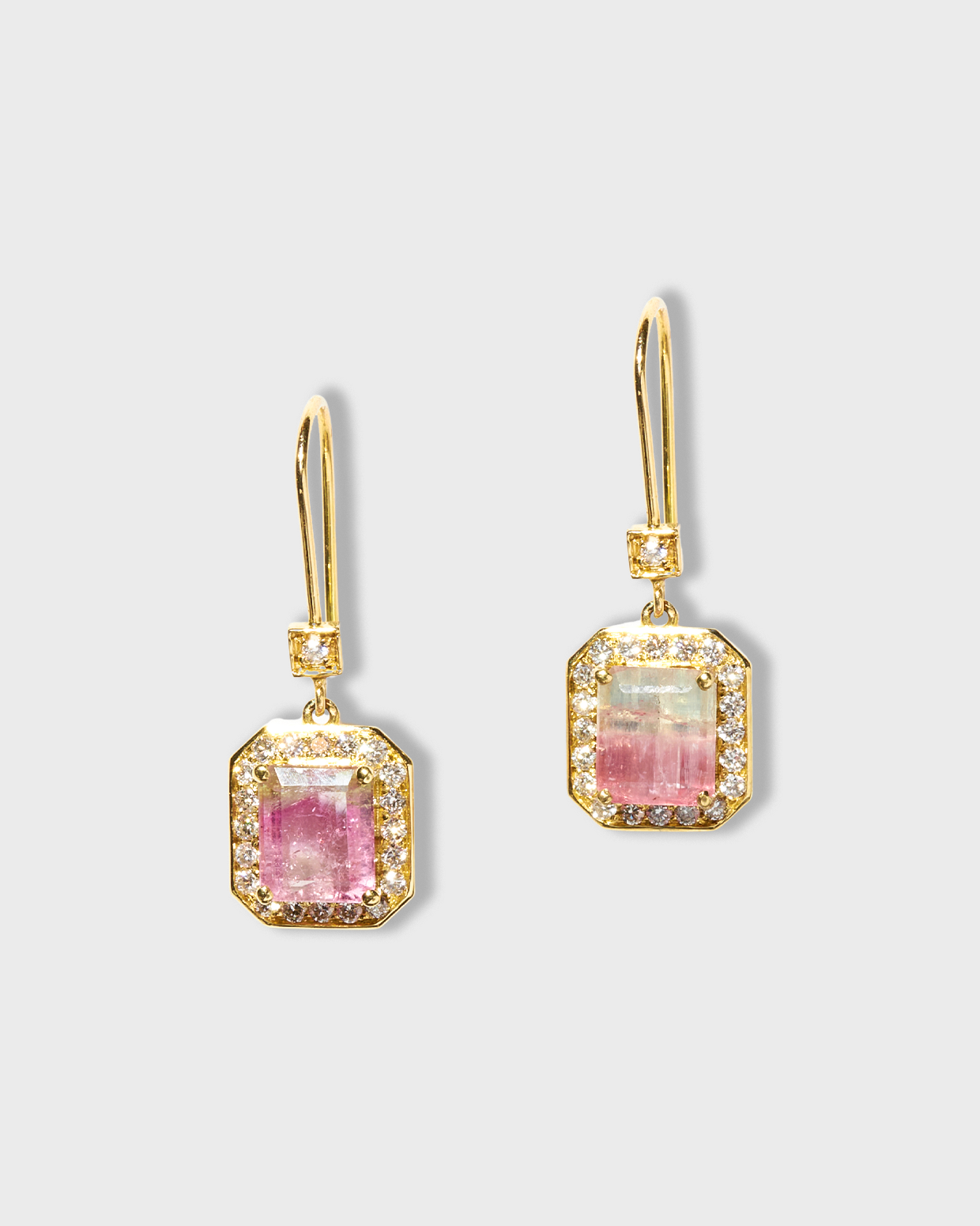 Treasure Cotton Candy Diamond Halo Tourmaline Earrings