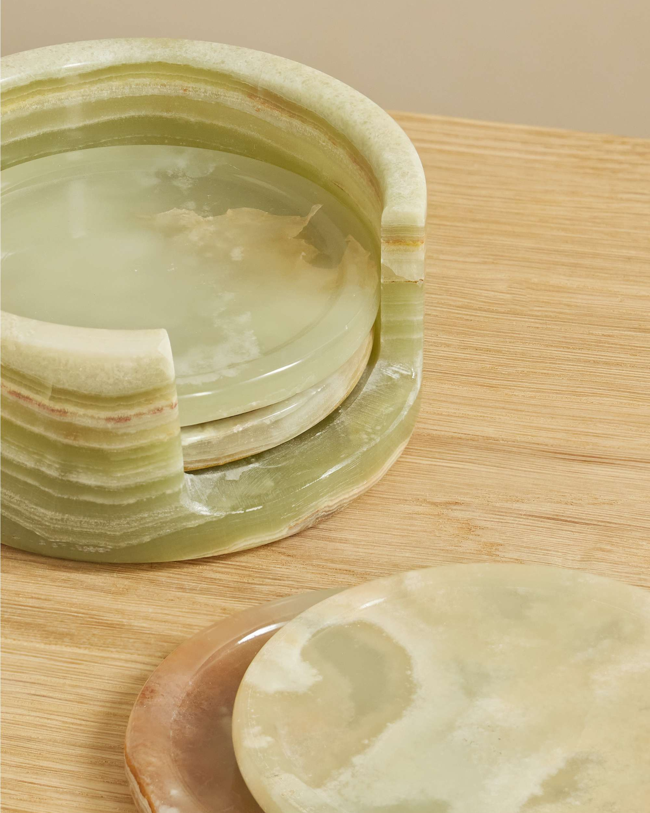 Elevate your everyday rituals with our Onyx Coaster Set—where earthy elegance meets functional beauty. Hand-carved from natural onyx, each piece carries its own soothing pattern to ground your space and protect your surfaces with intention. Perfect for entertaining or quiet moments alone, this set invites presence and connection—shop now to bring crystal calm into your home.