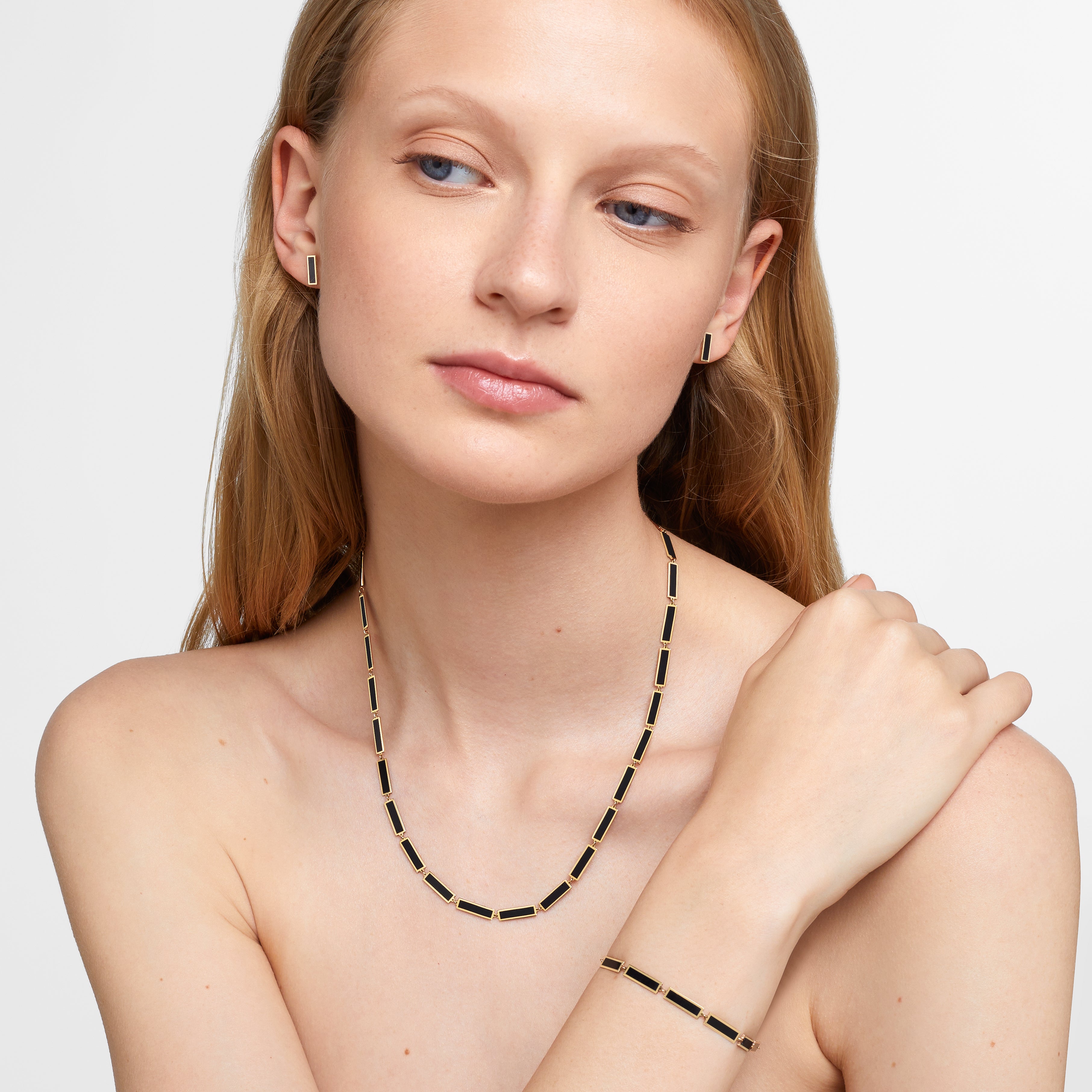 Marquet Onyx Gold Bar Chain Necklace