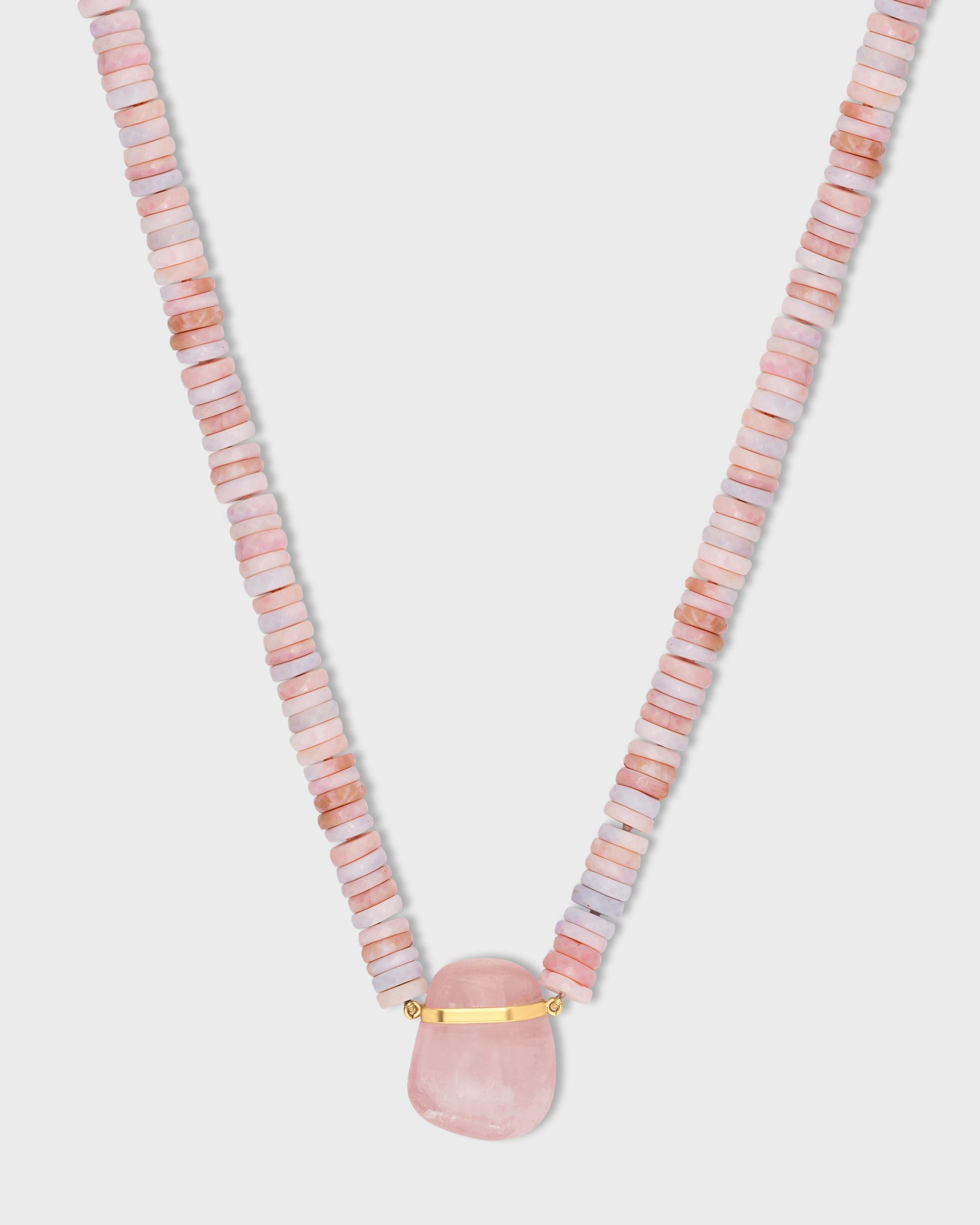 Aurora Pink Opal Rose Quartz Crystal Charm Necklace
