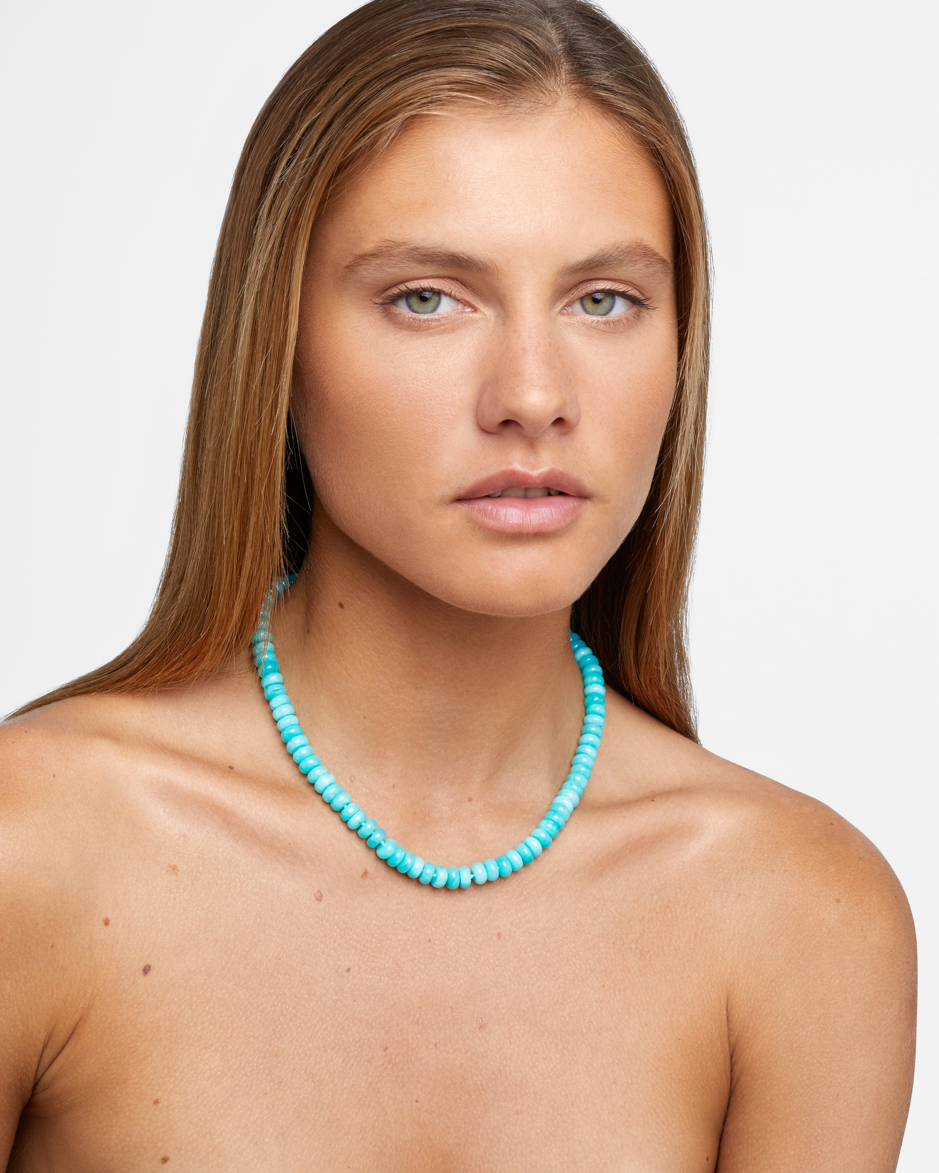 Amazonite hand beaded crystal necklace for all year round. Wear on its own or layer with all your favorite necklaces.