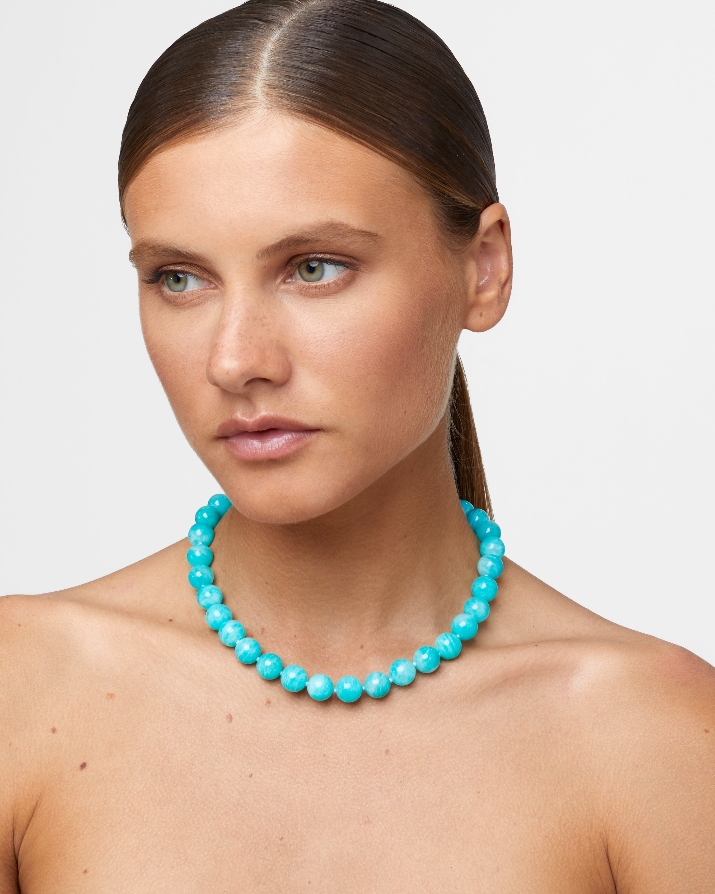 Amazonite hand beaded crystal sphere necklace for all year round. Wear on its own or layer with all your favorite necklaces.