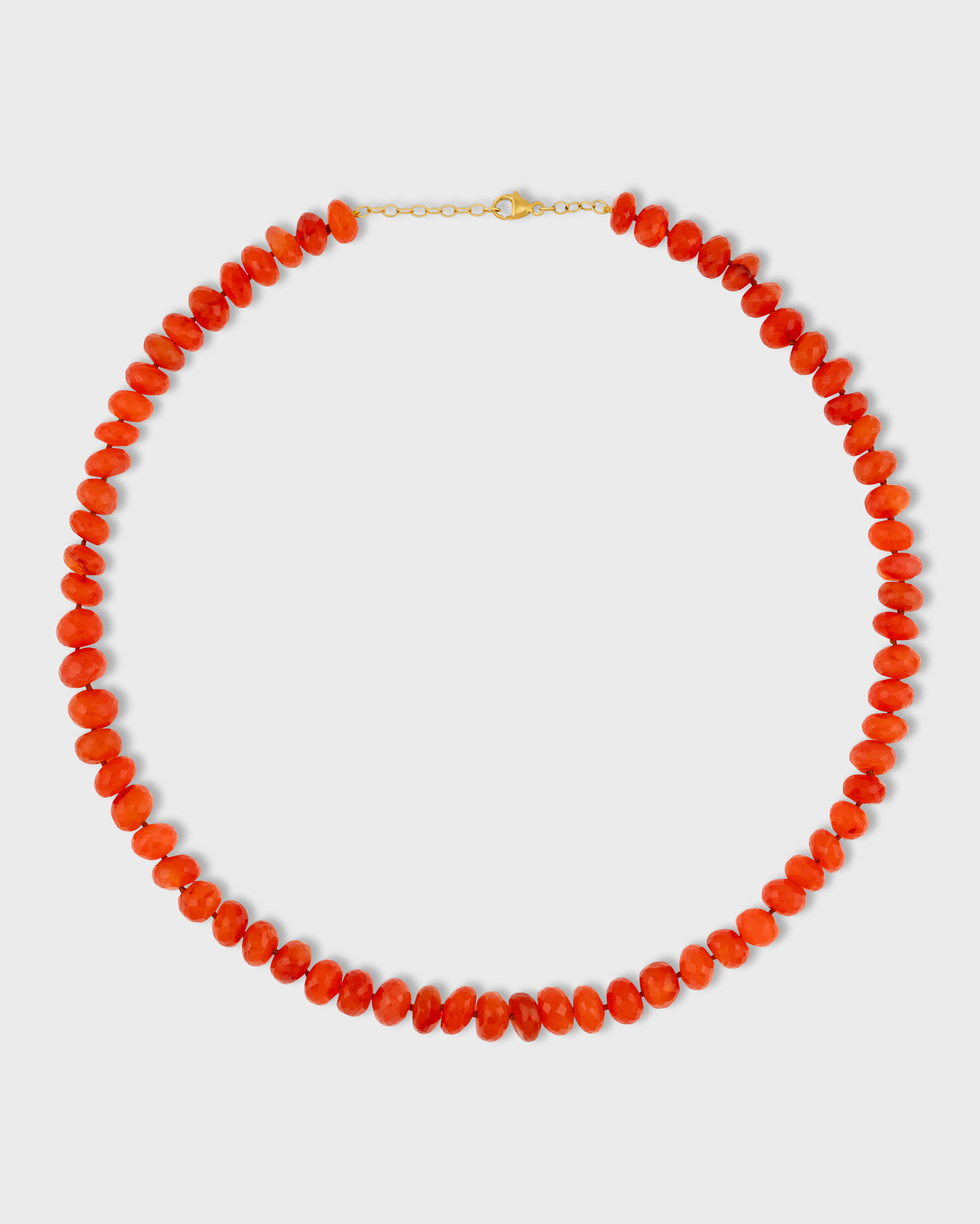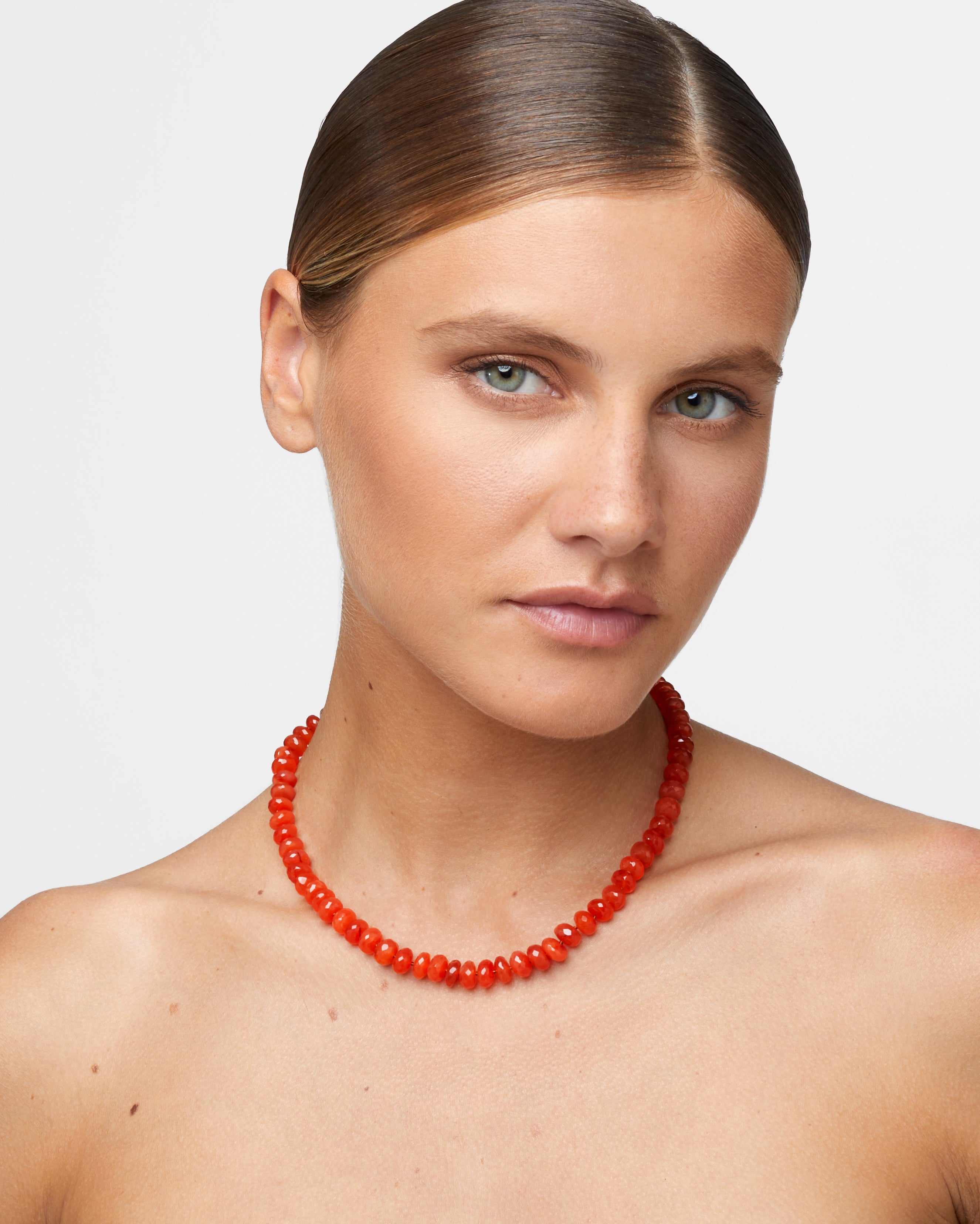 Featuring vibrant red-orange carnelian beads, this necklace exudes warmth and energy. Perfect for enhancing vitality and personal power, its smooth, polished surface gives it a sleek, modern look.