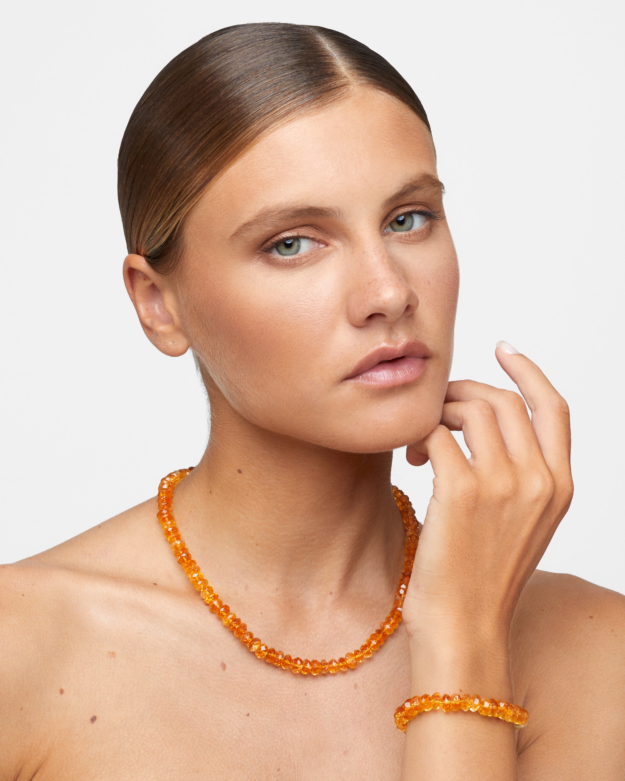Each beaded jewelry piece is hand strung from the highest quality materials that are cut from natural mineral sources. They are sensitive to prolonged exposure to hairsprays and scents. To ensure longevity please be gentle and avoid tugging and pulling of these pieces.