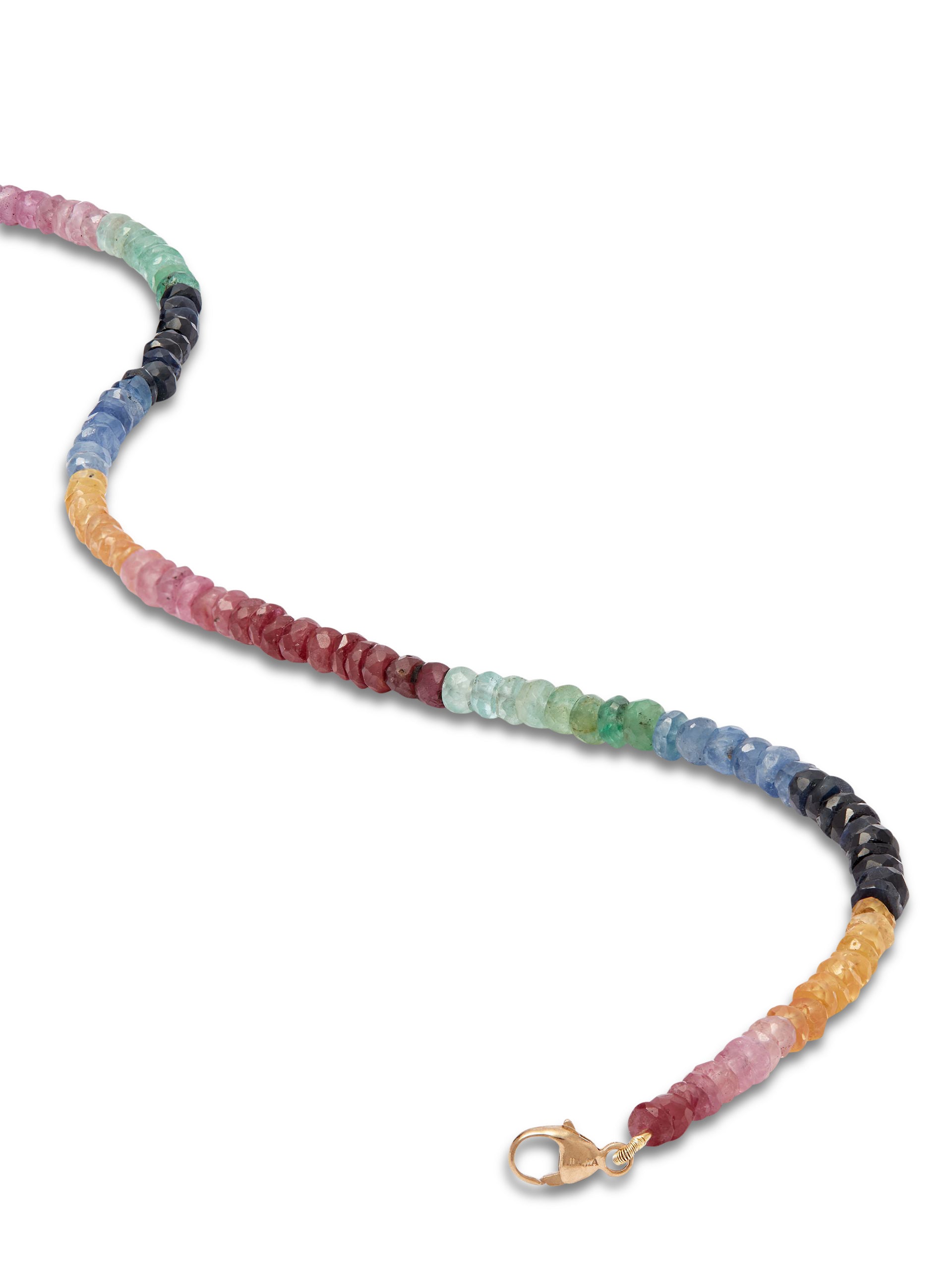 This bold anklet is crafted with dark-hued rainbow sapphires, hand-strung to highlight the rich, vibrant colors of nature. A striking piece that adds a touch of elegance and vibrancy to any look.