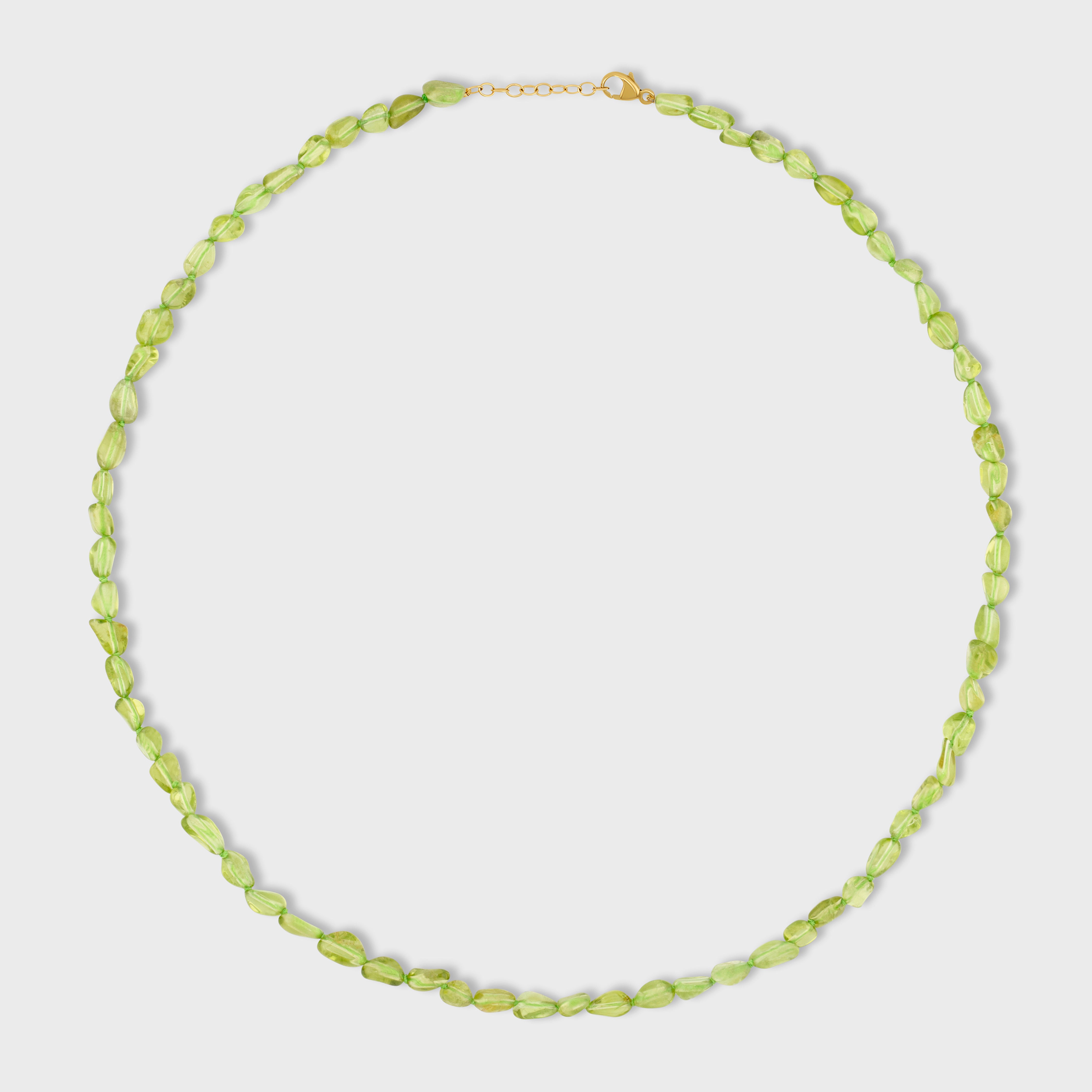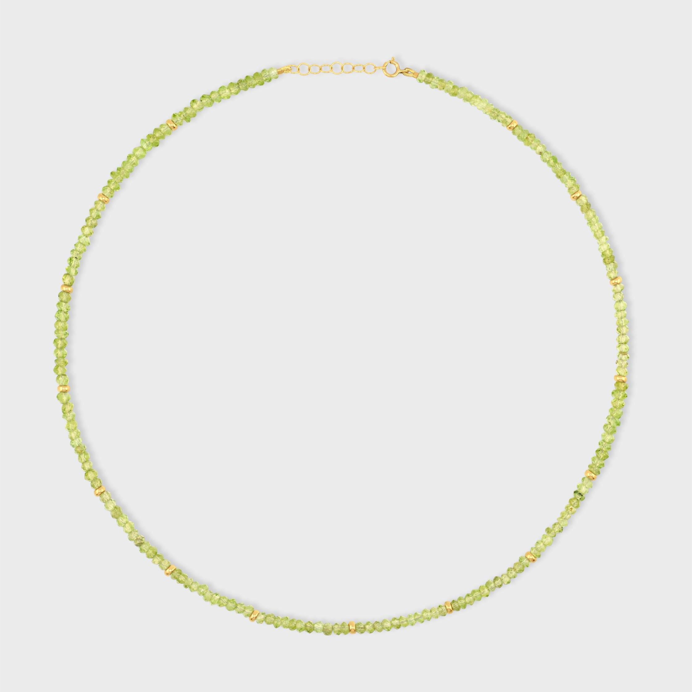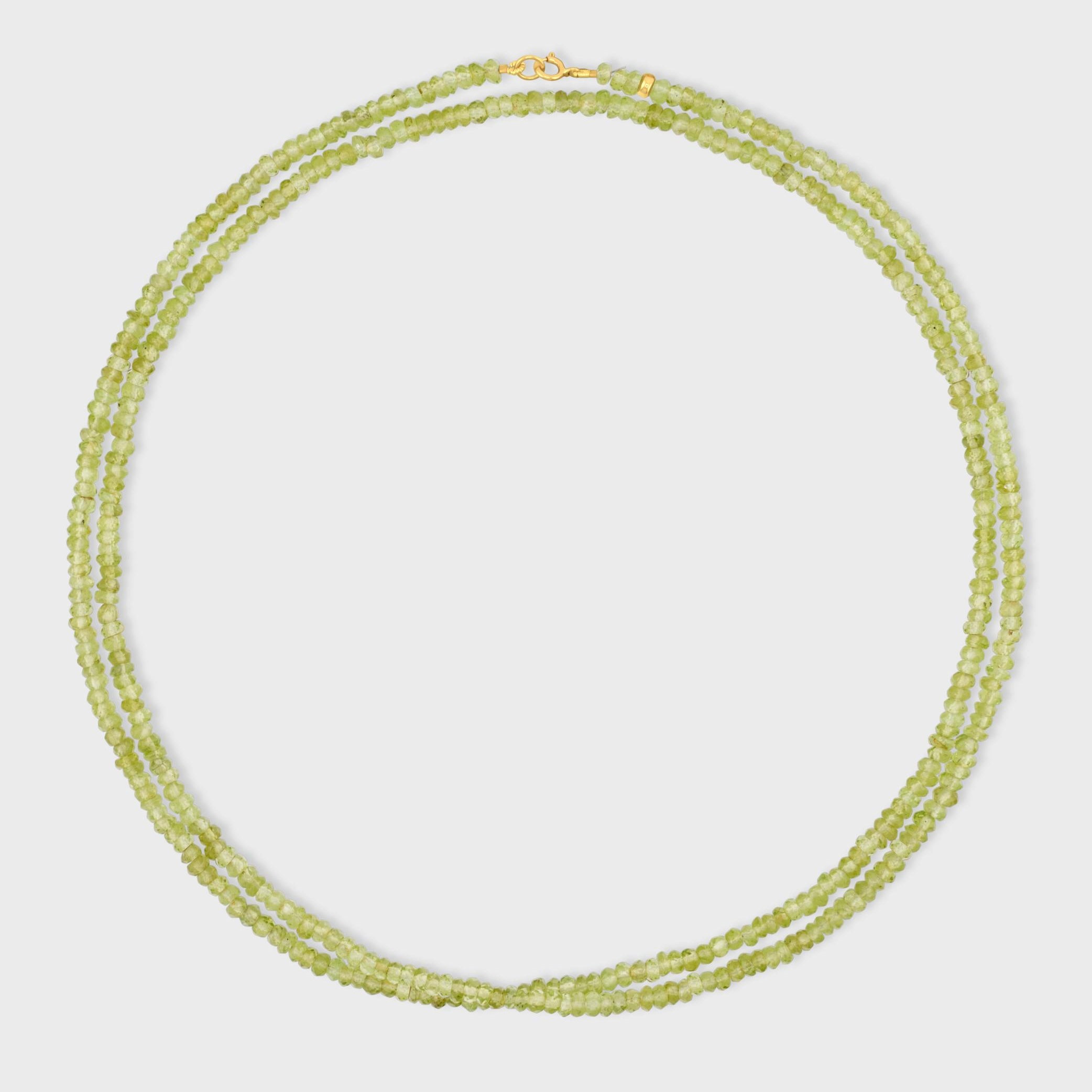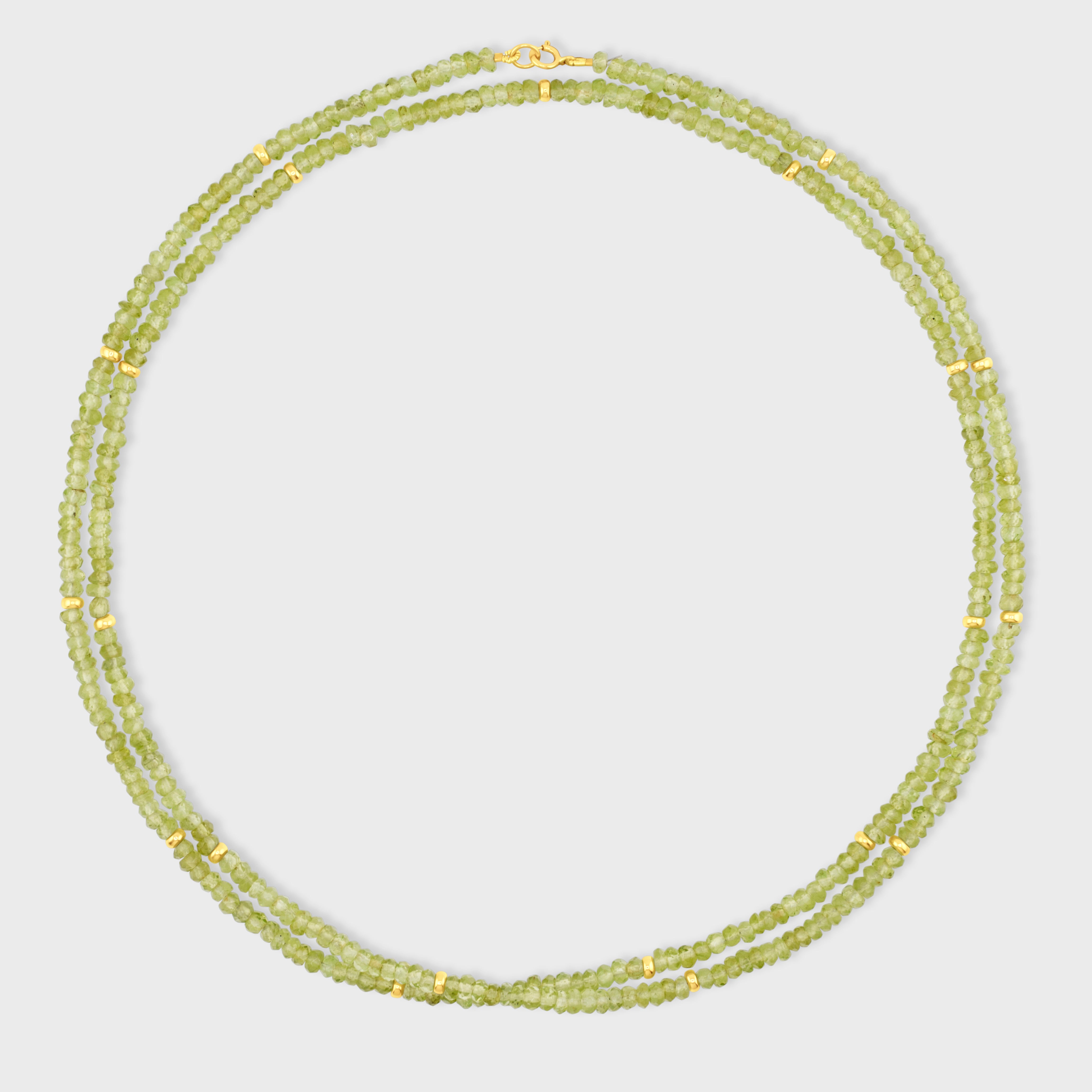 Birthstone August Peridot Gold Bead Double Long Necklace