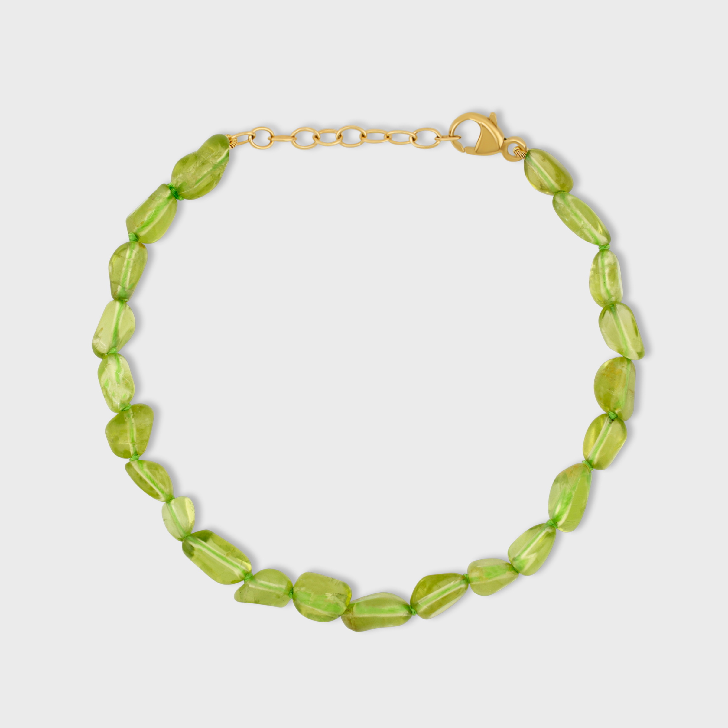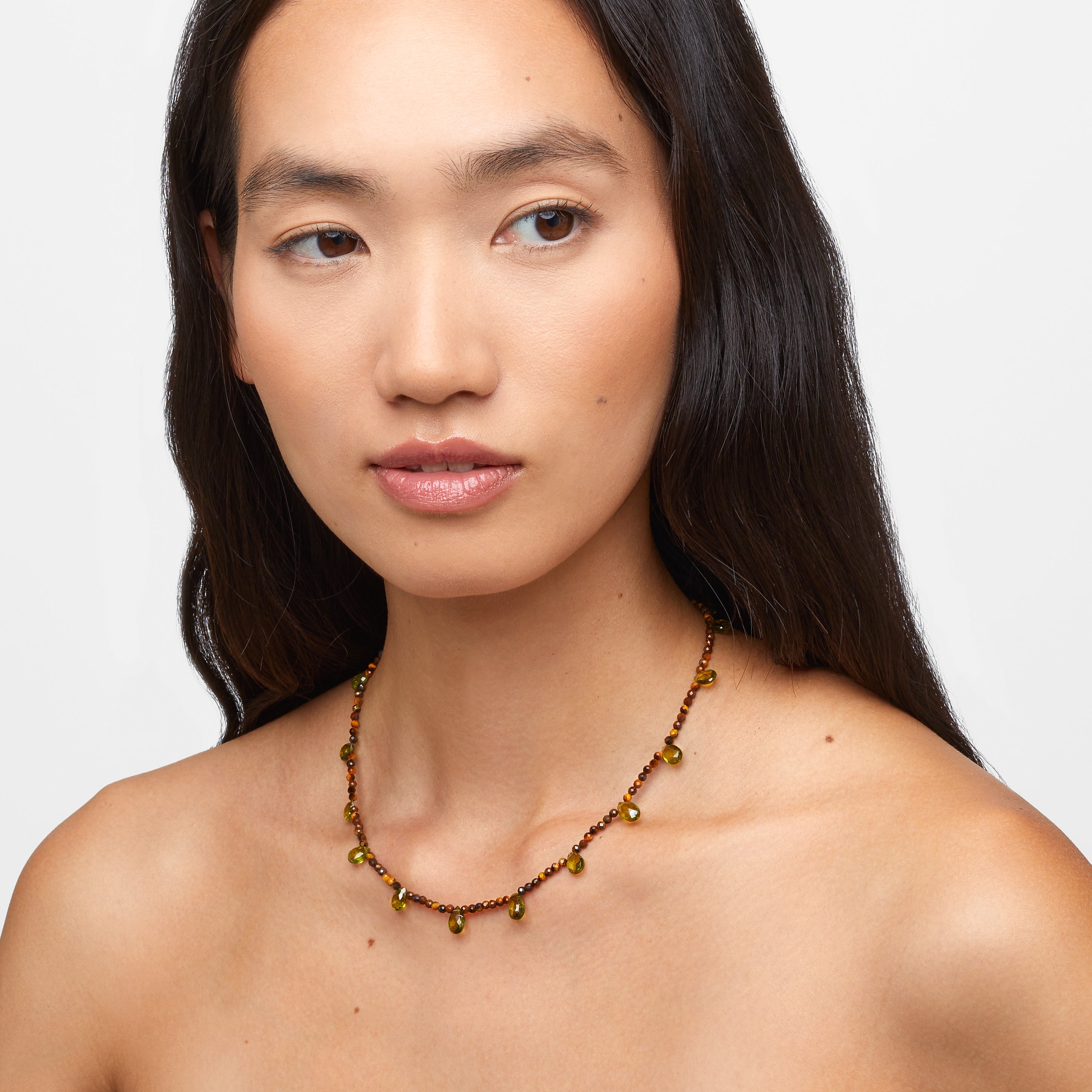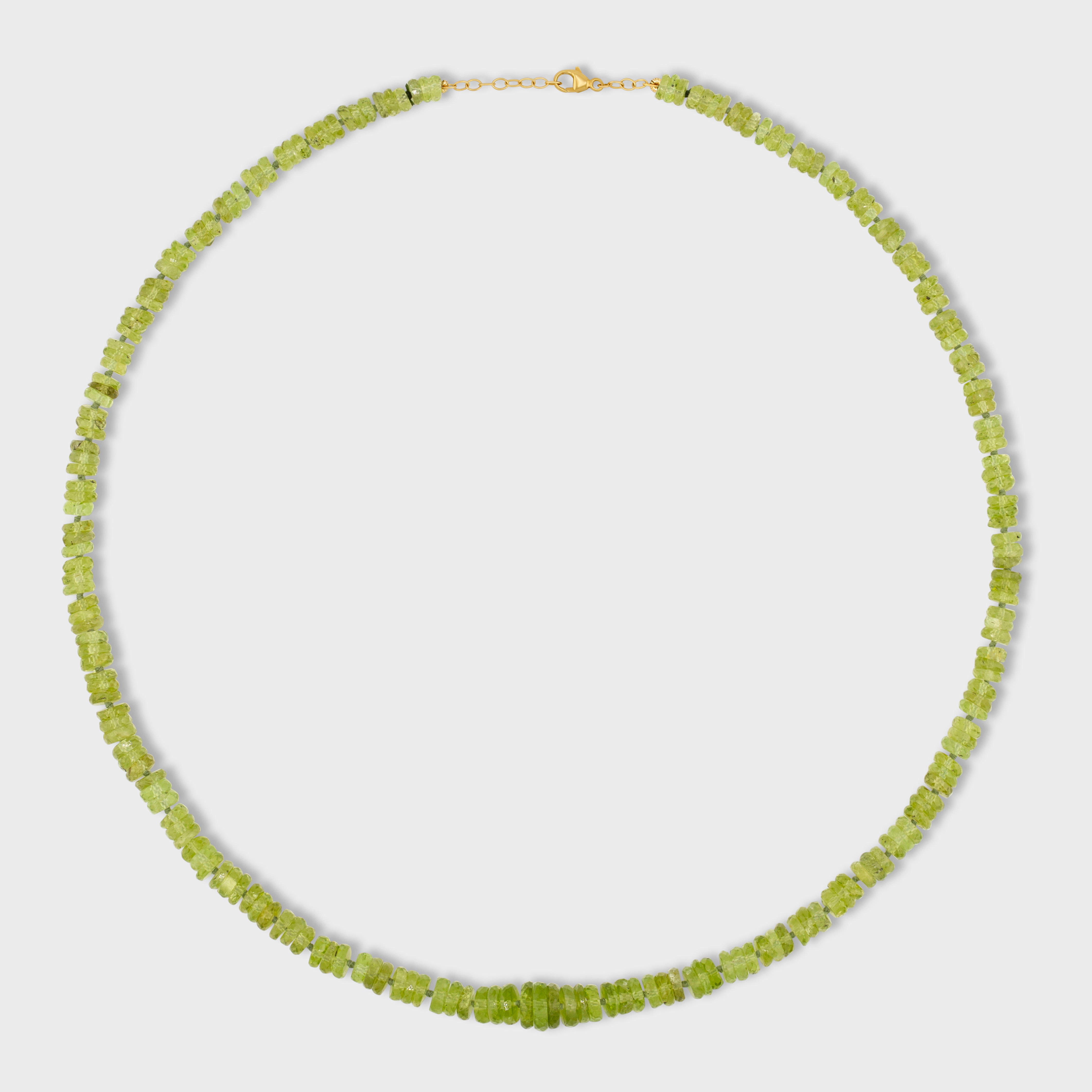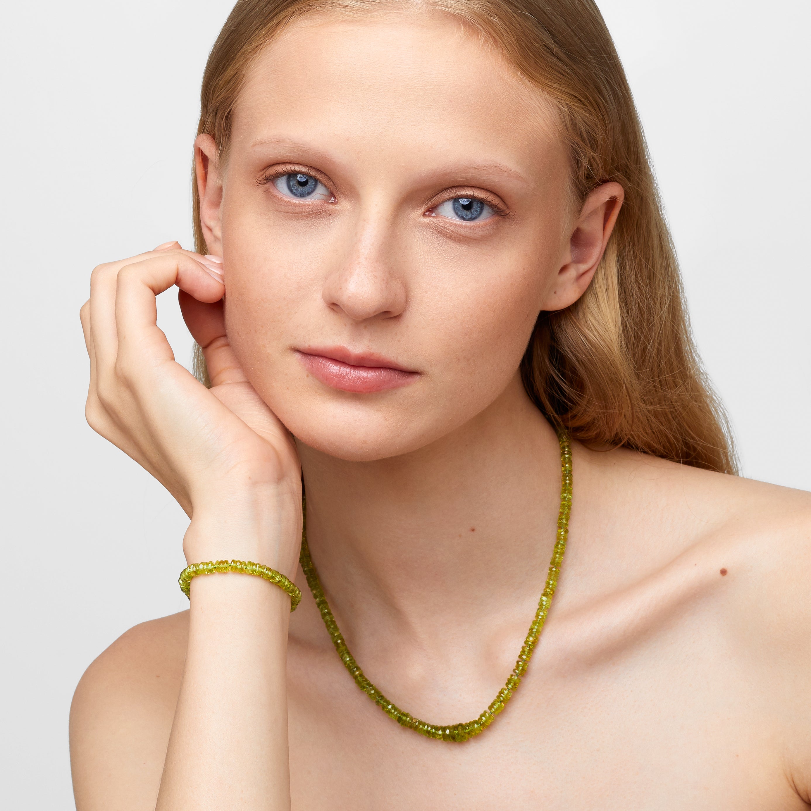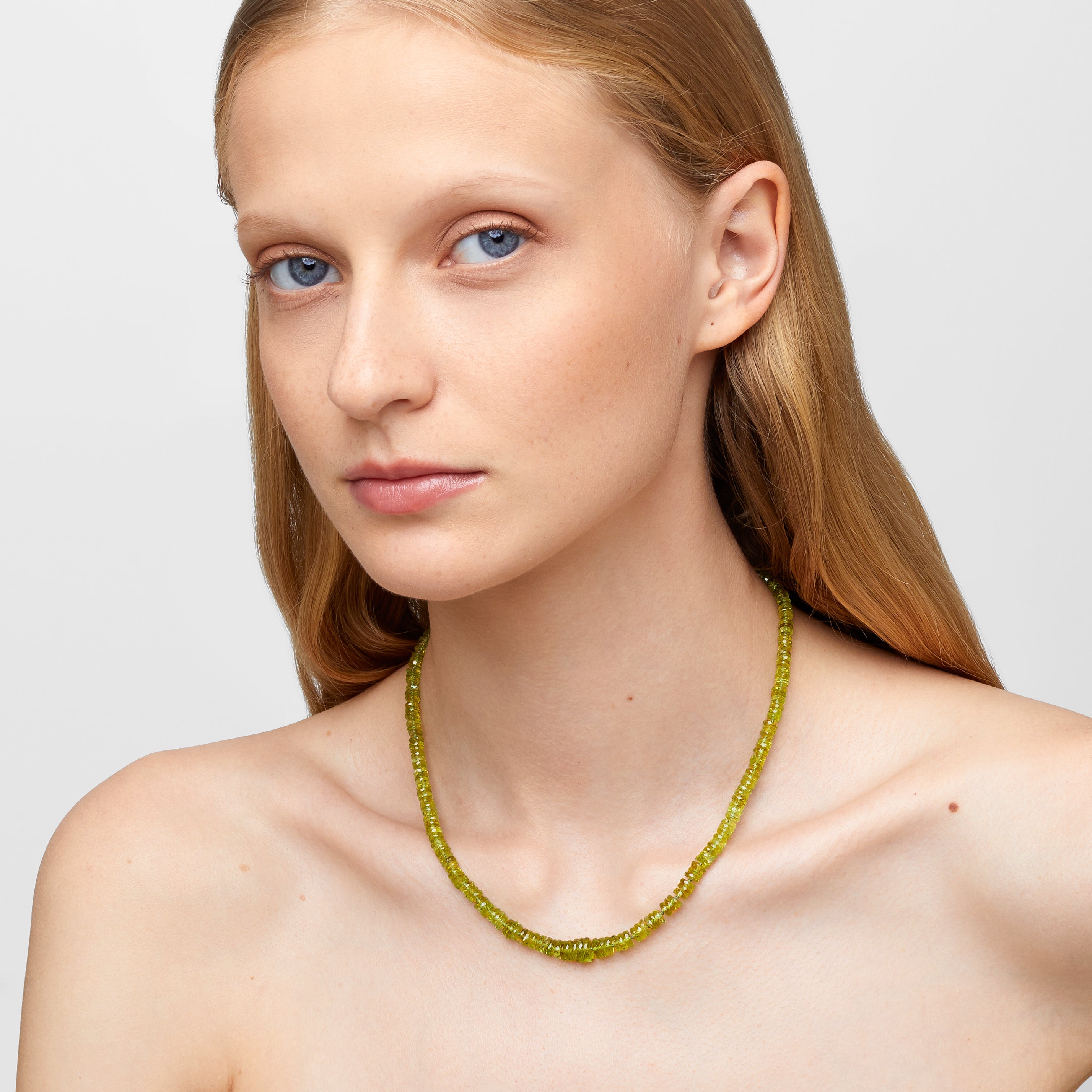 Birthstone August Peridot Gold Bead Double Long Necklace