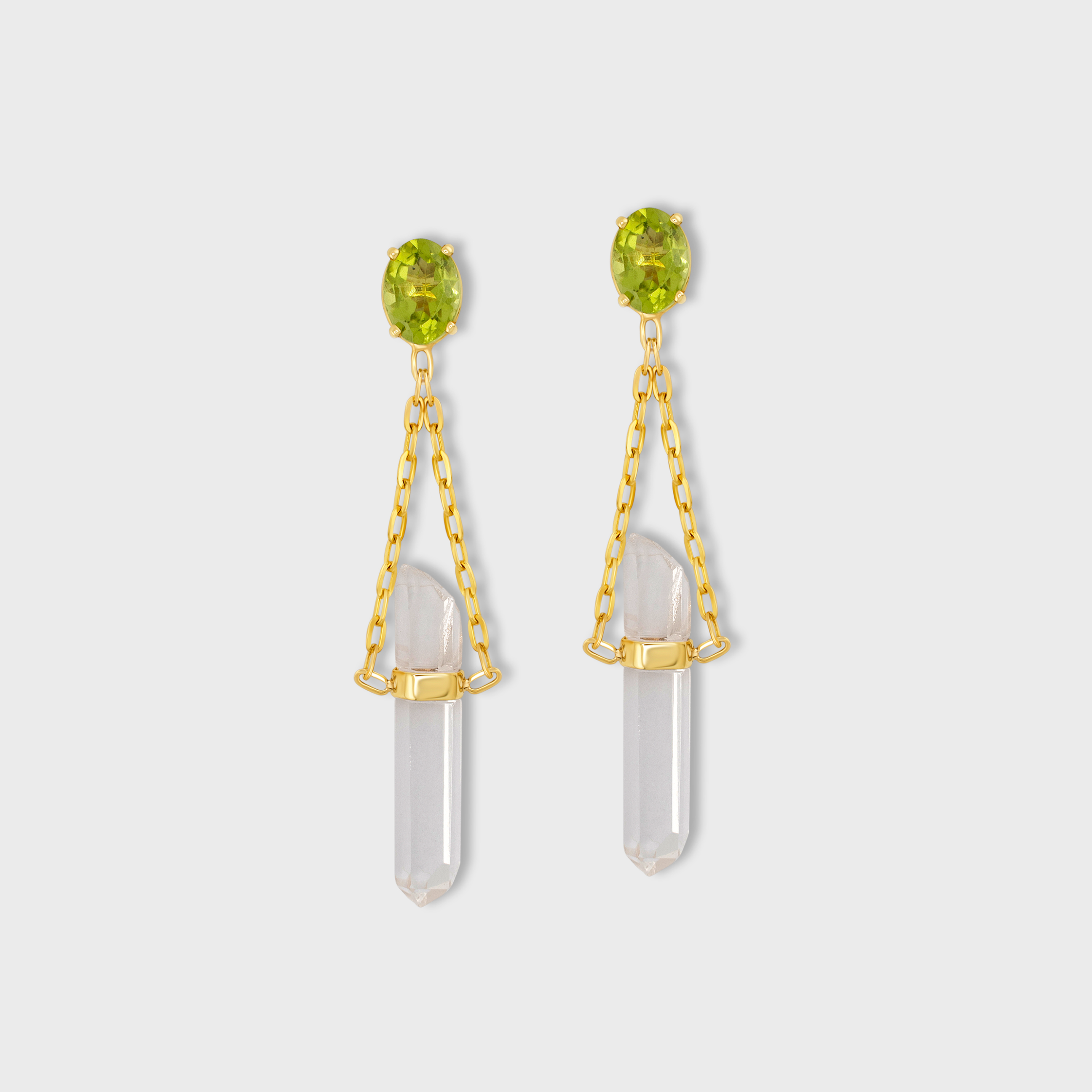 Chakra Peridot Gemstone Crystal Drop Earrings