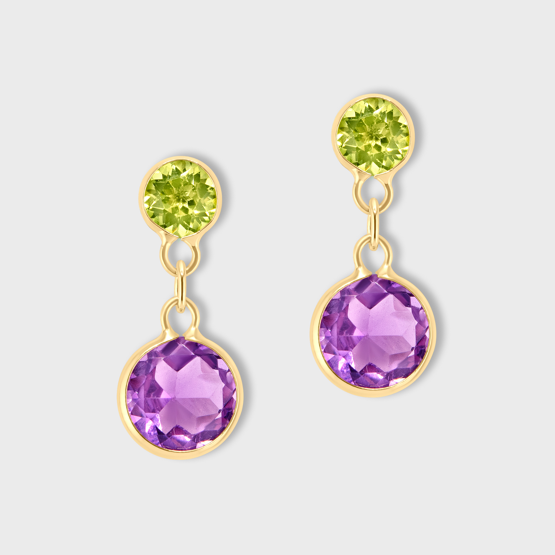Chakra Peridot Amethyst Sphere Drop Earrings