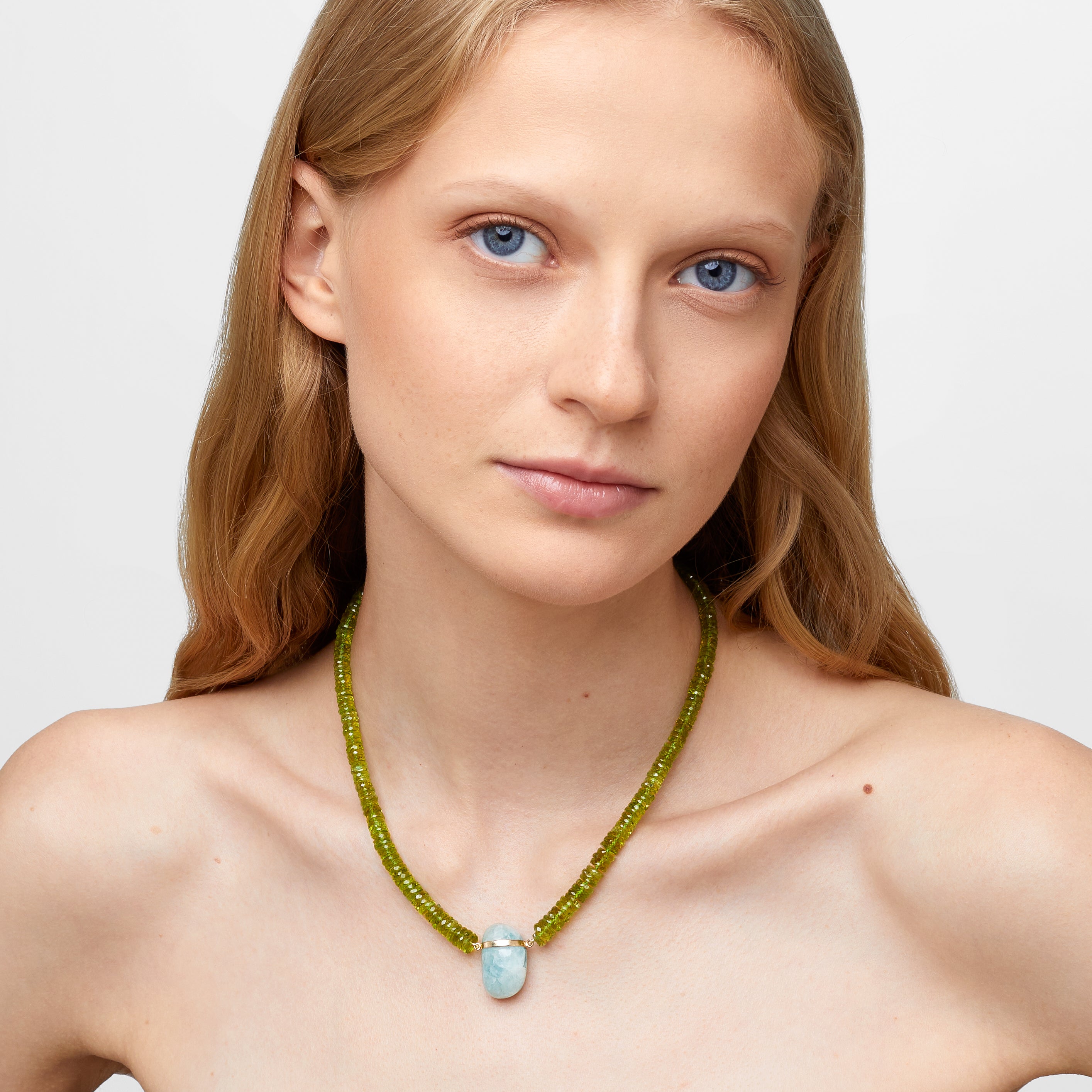 Aurora Aquamarine & Peridot Fancy Cut Necklace